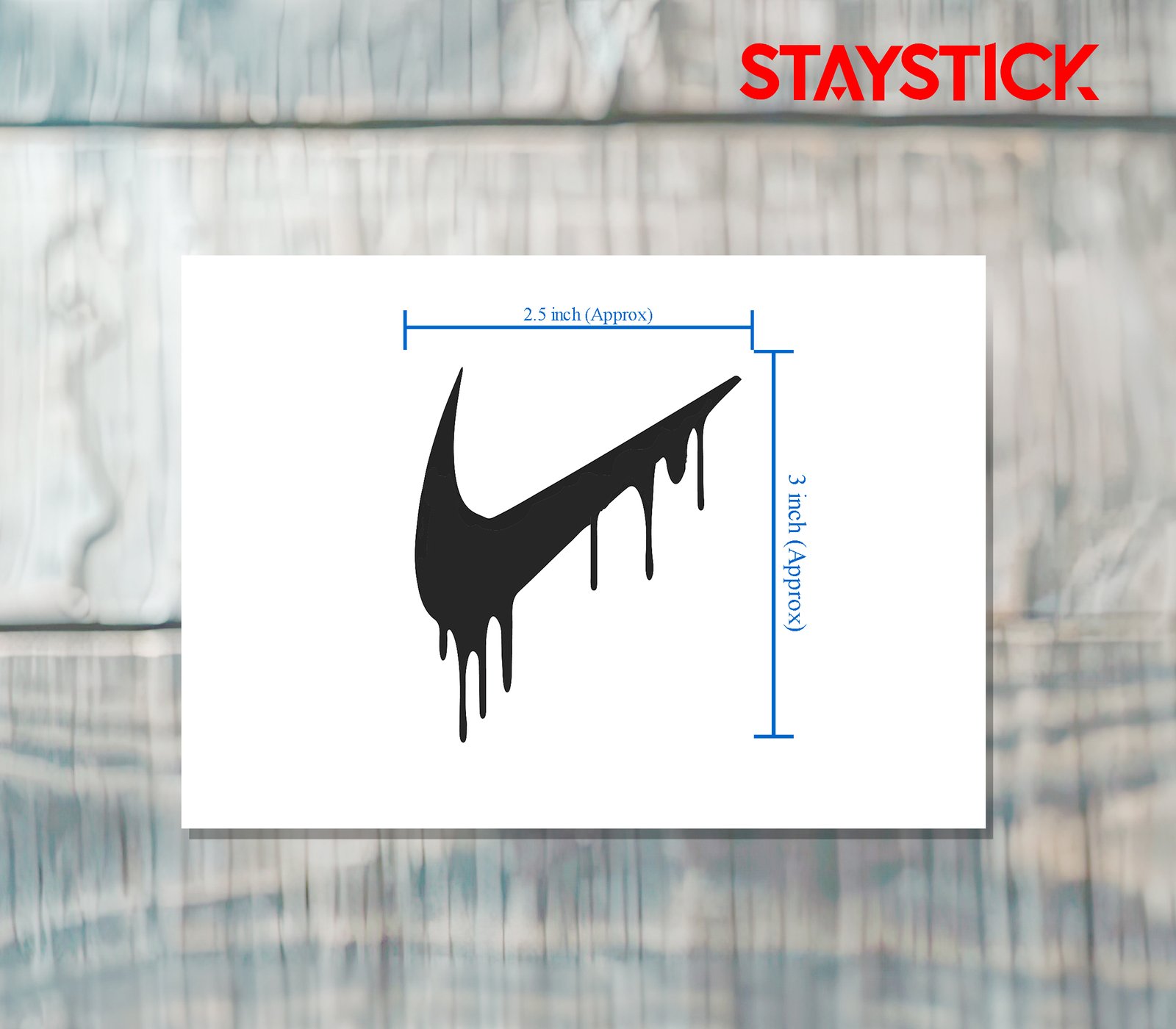 This logo sticker showcases a creative twist on the iconic Nike swoosh design, presented with a bold and artistic dripping paint effect. The swoosh, usually known for its sleek and clean lines, is transformed into a unique street-art inspired version where the bottom edges appear to be melting or dripping like wet paint or liquid ink. This gives the design a modern, edgy, and rebellious vibe, making it stand out from the traditional logo. Perfect for adding personality and flair, this sticker embodies both style and creativity—ideal for decorating laptops, skateboards, water bottles, notebooks, or any surface where you want to express a mix of sporty energy and artistic individuality.
