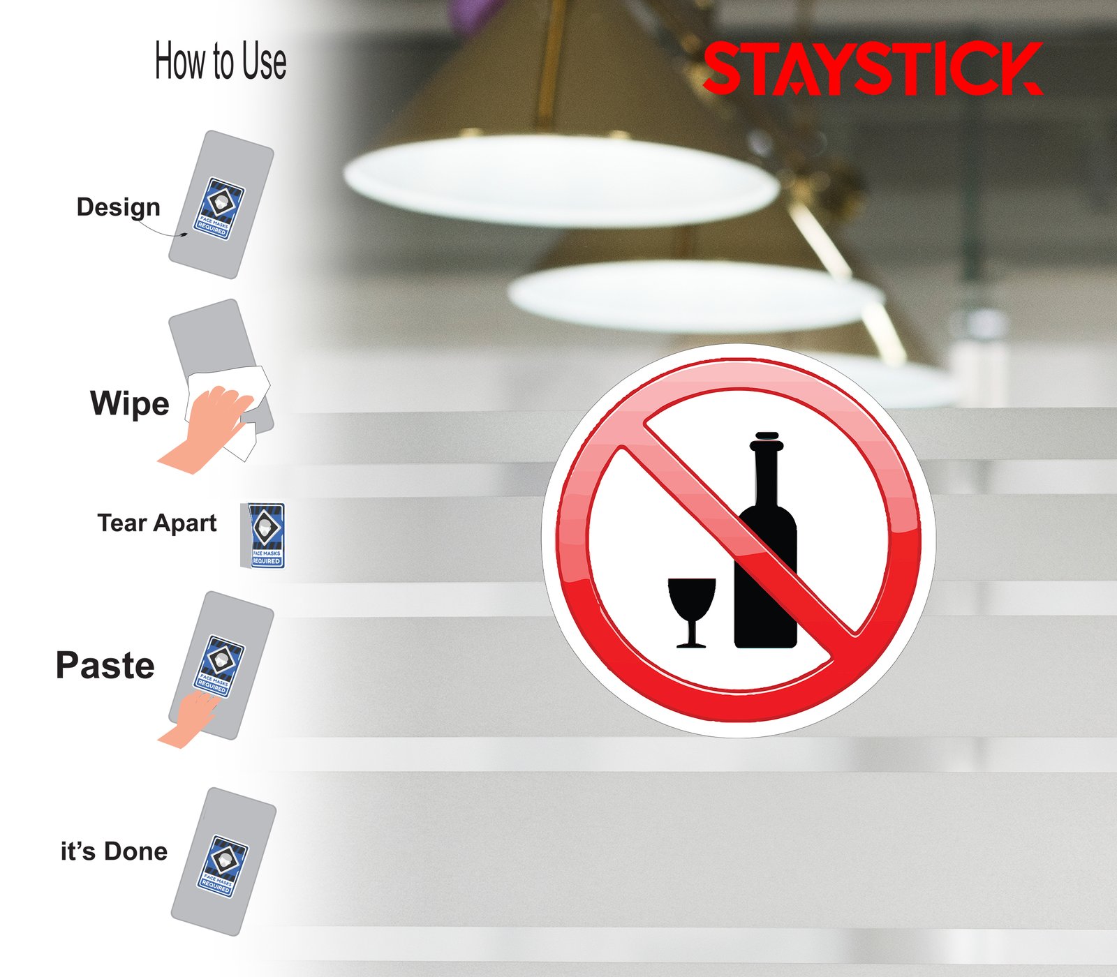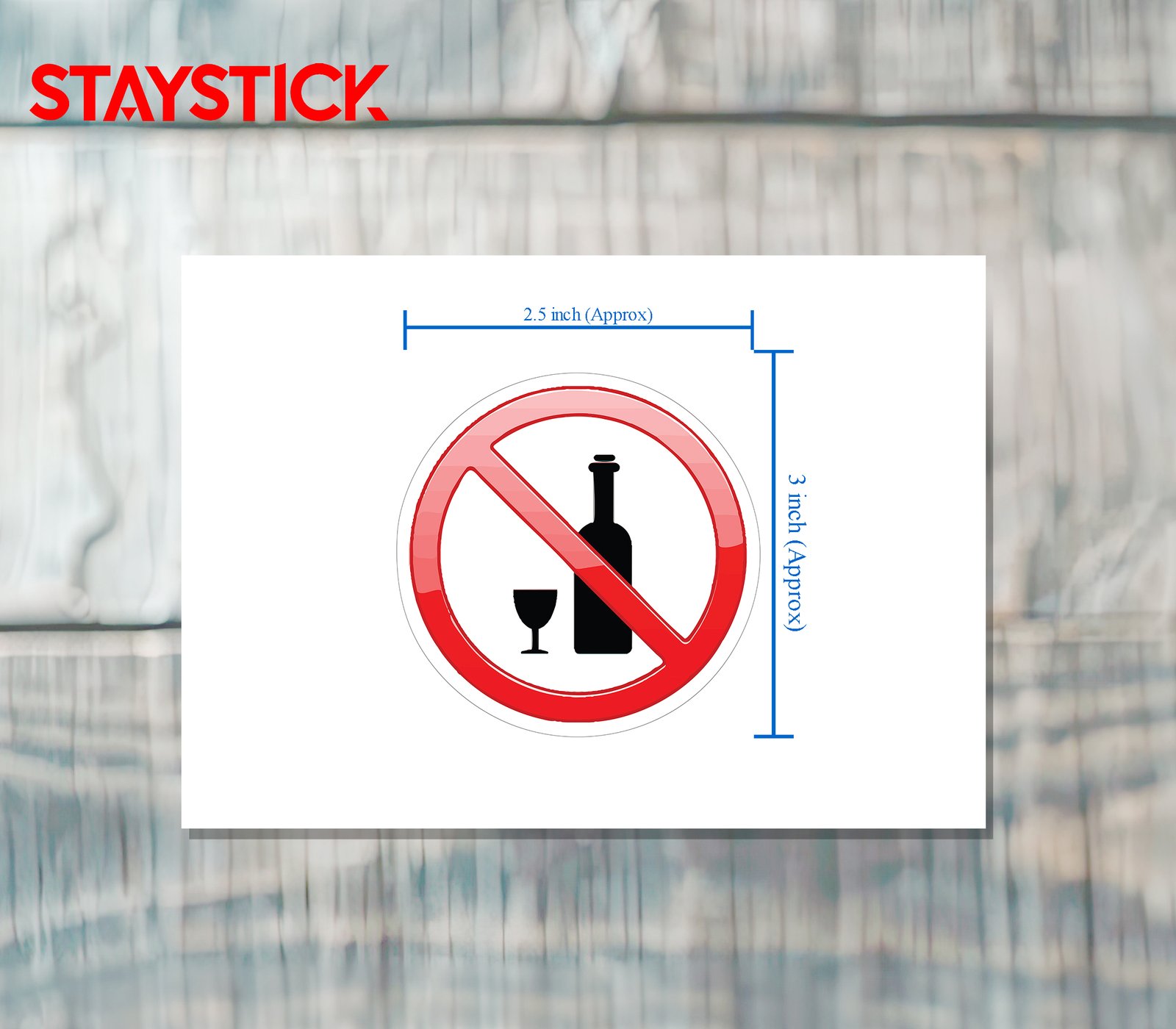 “This sticker features a bold red prohibition circle with a diagonal slash crossing over the icons of a wine bottle and glass, universally symbolizing ‘No Alcohol.’ The high-contrast black-and-white imagery with a red ban mark makes the message instantly recognizable.Commonly used in workplaces, hospitals, educational institutions, public spaces, or restricted areas, this sticker warns individuals that alcohol consumption or possession is strictly prohibited. It helps maintain discipline, ensures safety, and promotes a healthy, alcohol-free environment in designated zones.”