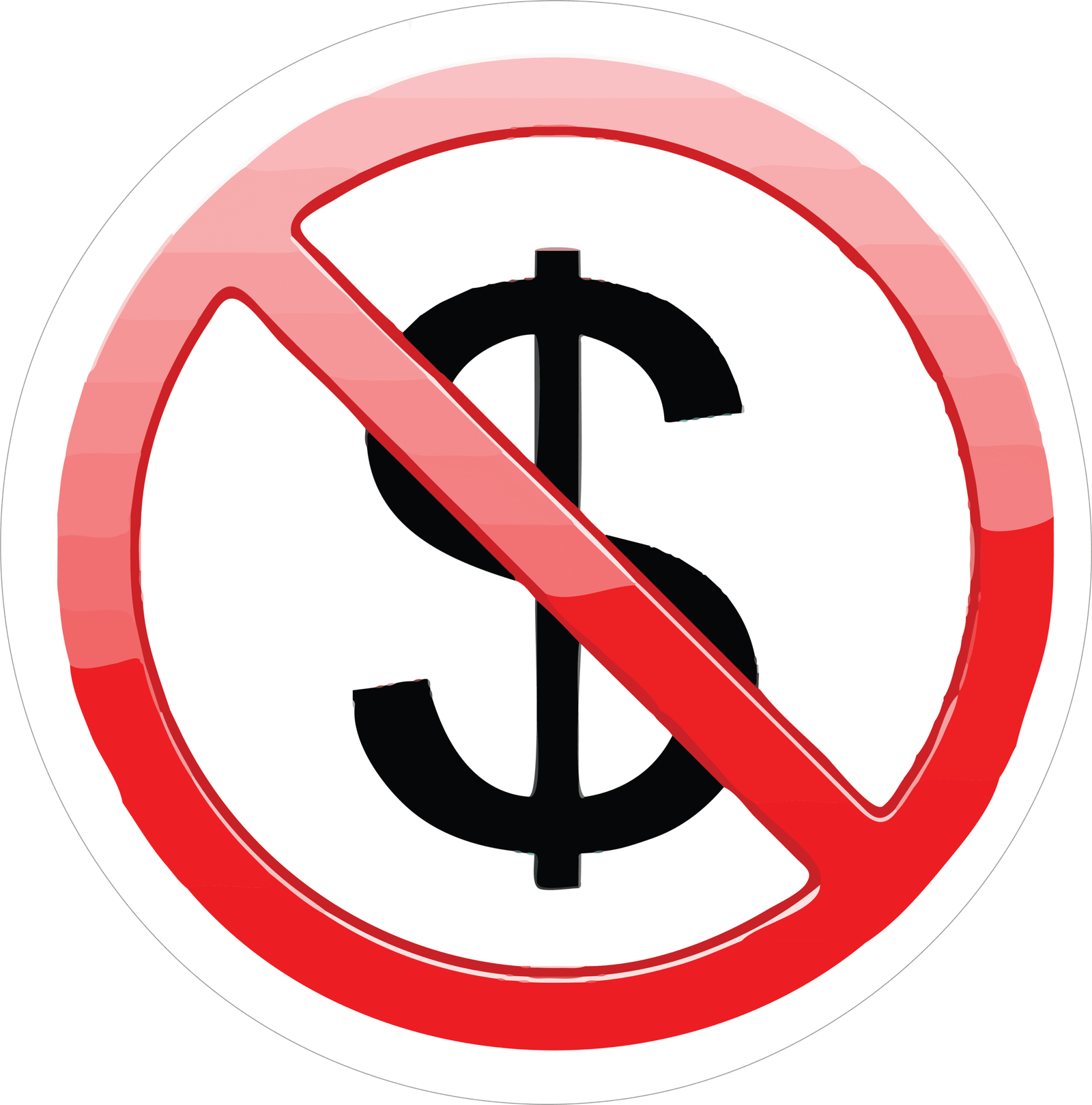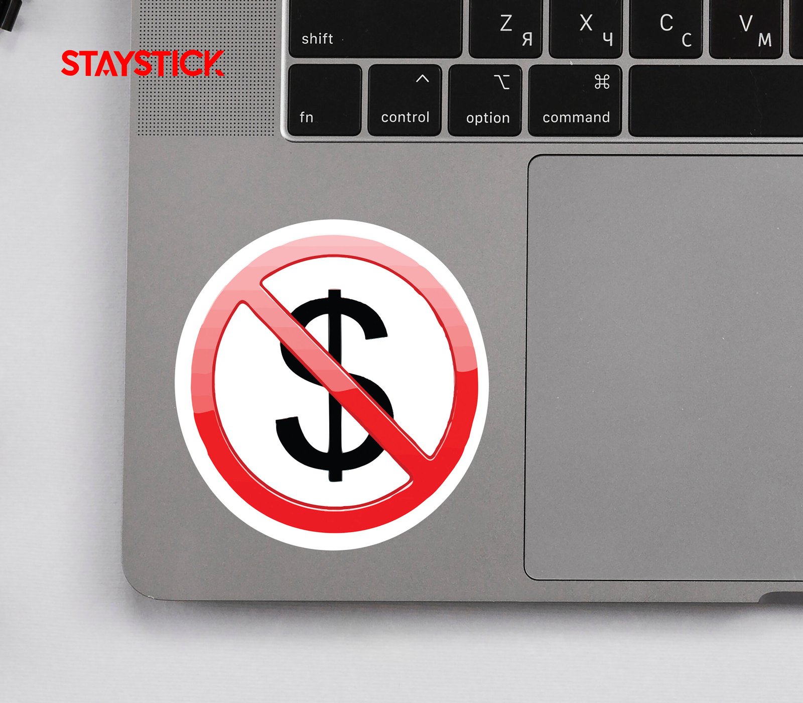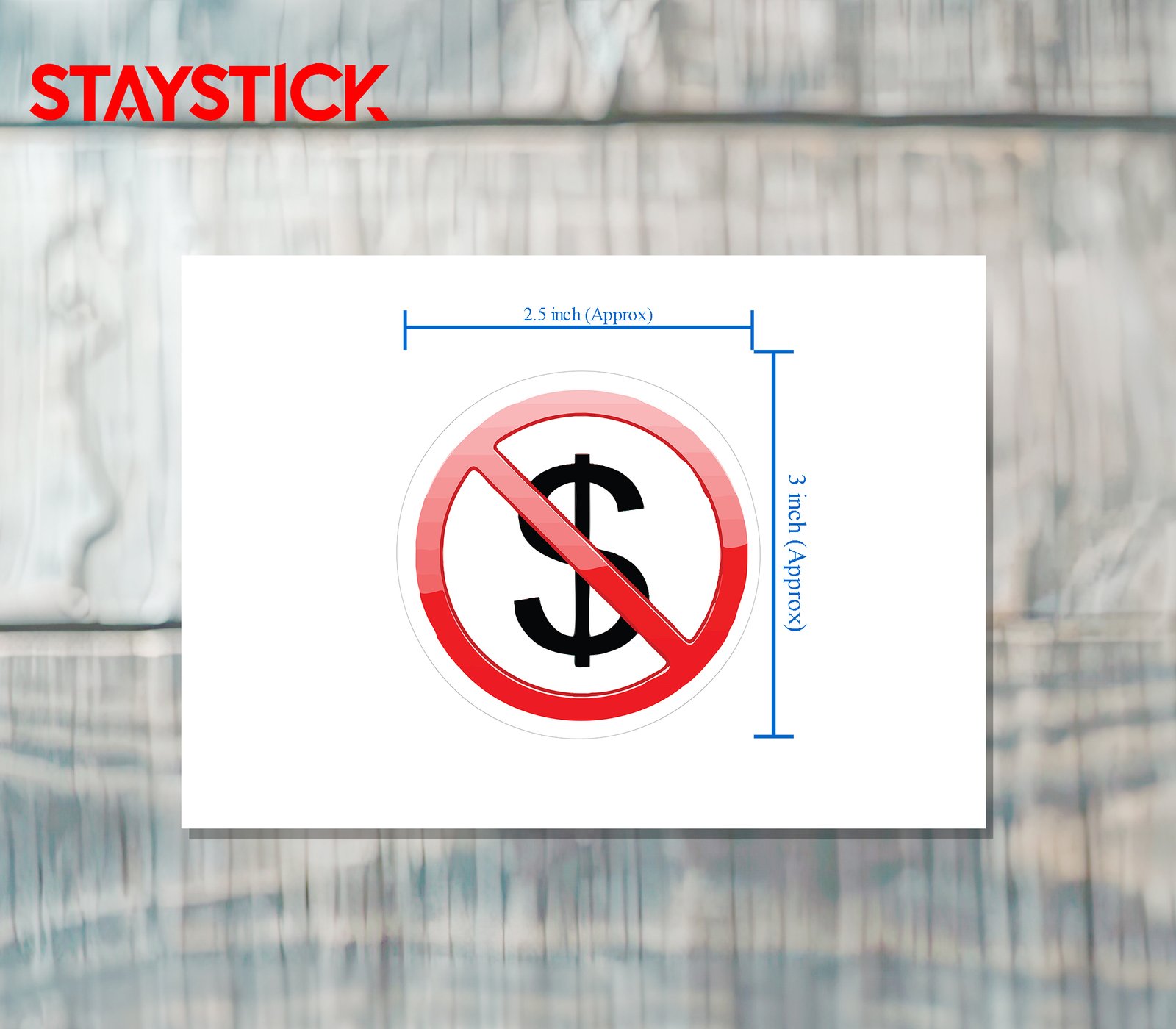 “Sticker showing a dollar sign with a red prohibition circle.No cash transactions allowed.Prohibition symbol indicating money is not accepted here.”
