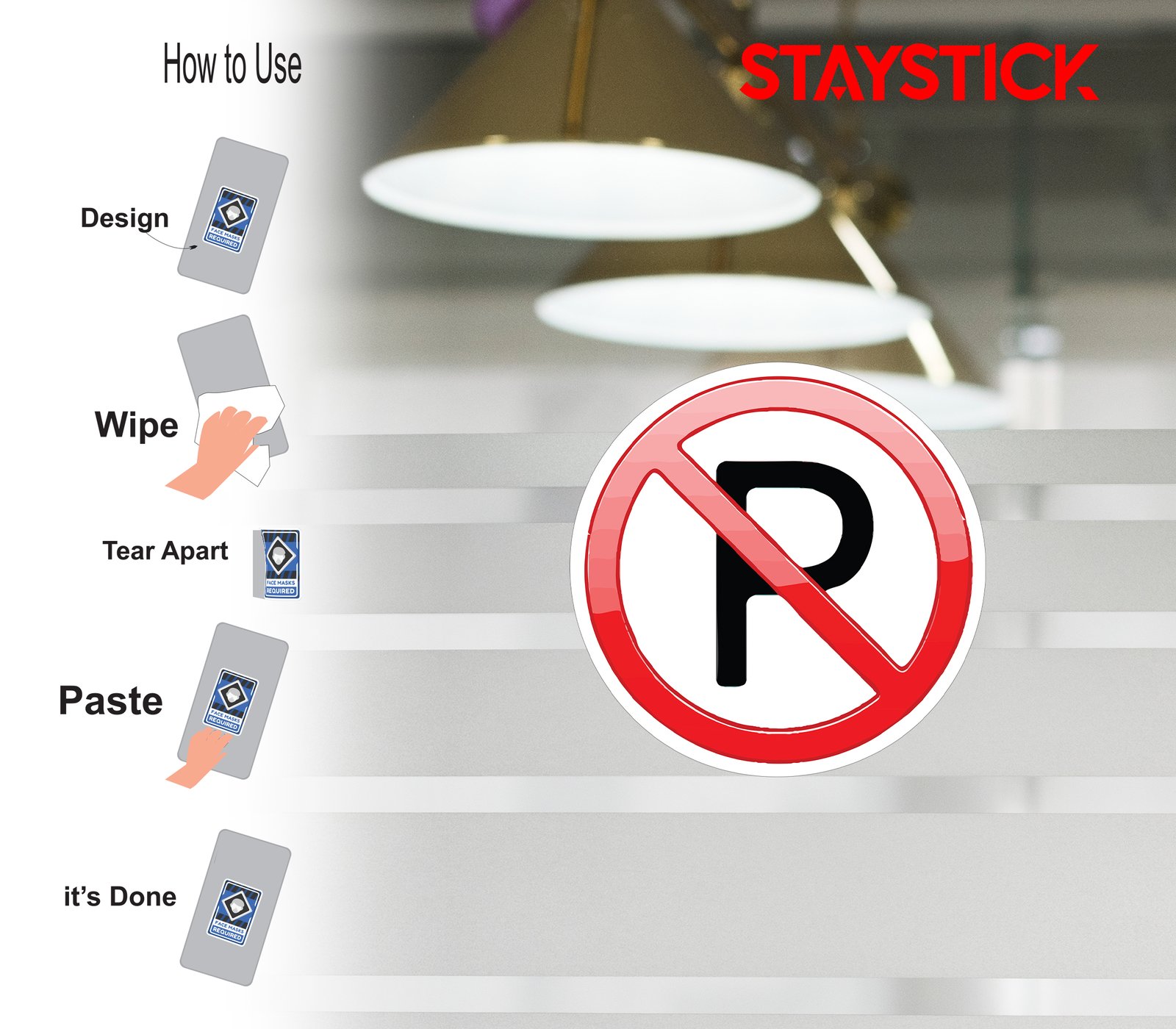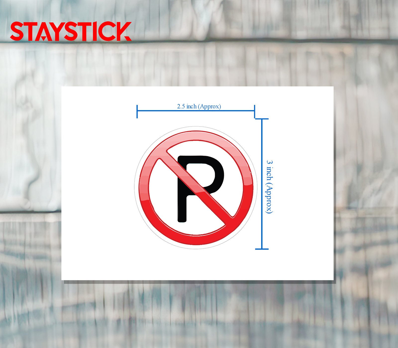 “This sticker displays a bold red prohibition circle with a diagonal line crossing through the letter ‘P,’ universally symbolizing ‘No Parking.’ The design uses simple and high-contrast elements—black lettering on a white background with a red ban mark—for instant recognition.Typically used in parking lots, roadways, private properties, or restricted spaces, this sticker informs drivers that parking in the area is strictly prohibited. By clearly marking such zones, it helps in maintaining smooth traffic flow, preventing congestion, and ensuring safety and access where needed.”