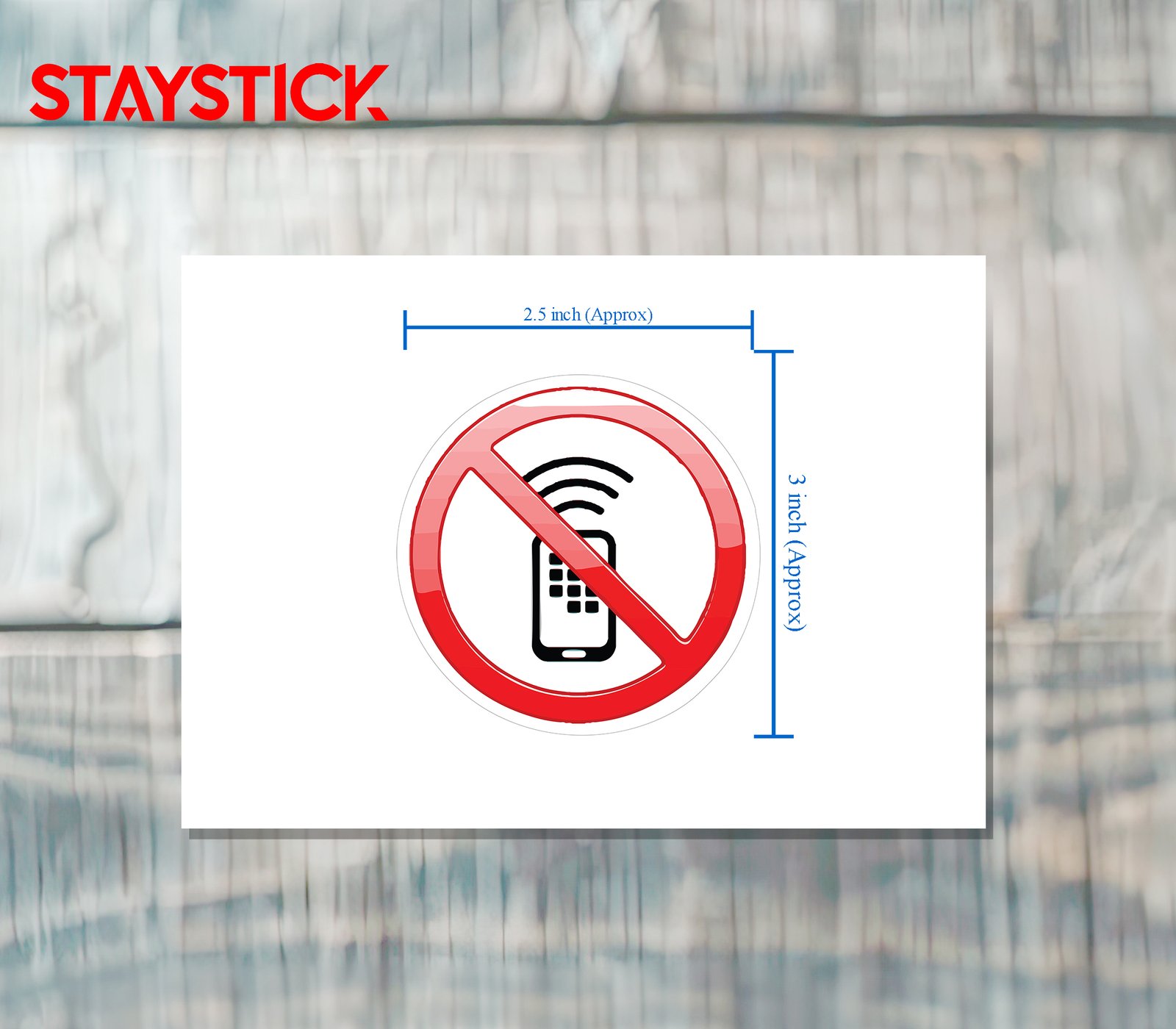 “This sticker features a black mobile phone icon with signal waves, enclosed in a bold red prohibition circle with a diagonal line across it. It clearly communicates that the use of mobile phones is strictly prohibited in this area.Commonly placed in hospitals, examination halls, classrooms, laboratories, and workplaces, this sticker serves to reduce distractions, prevent interference with sensitive equipment, and maintain discipline. The clear red, white, and black design ensures instant recognition of the rule.”