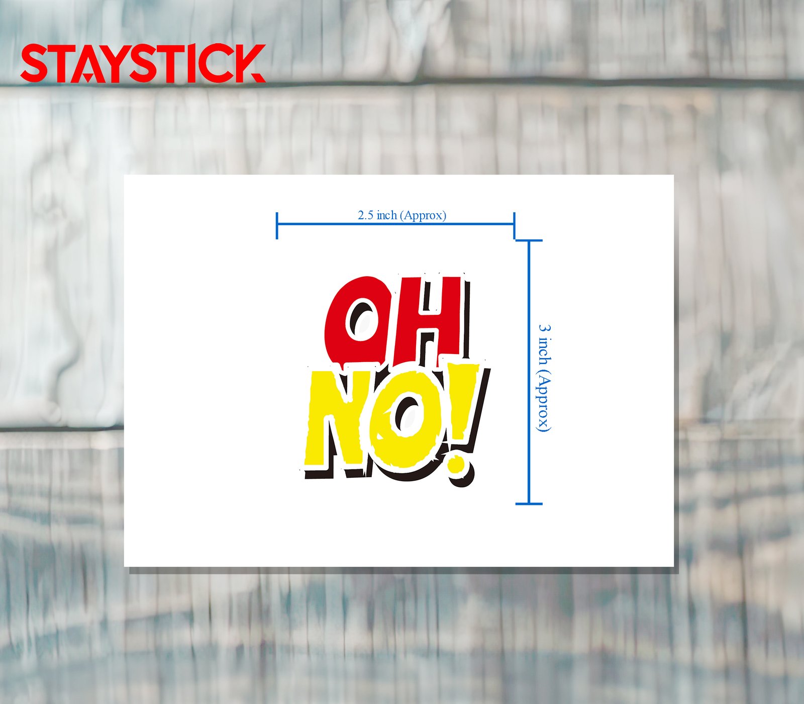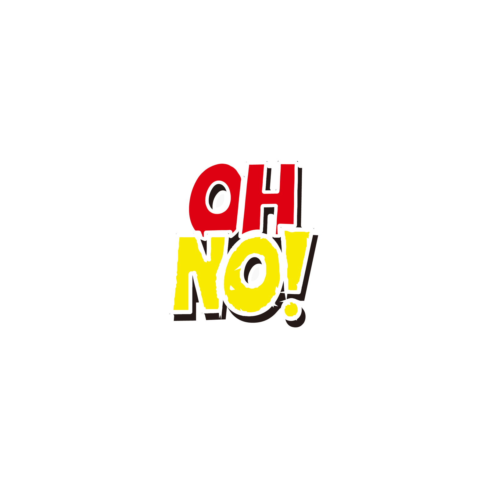 Comic-style die-cut sticker: “OH NO!” stacked, red over yellow.