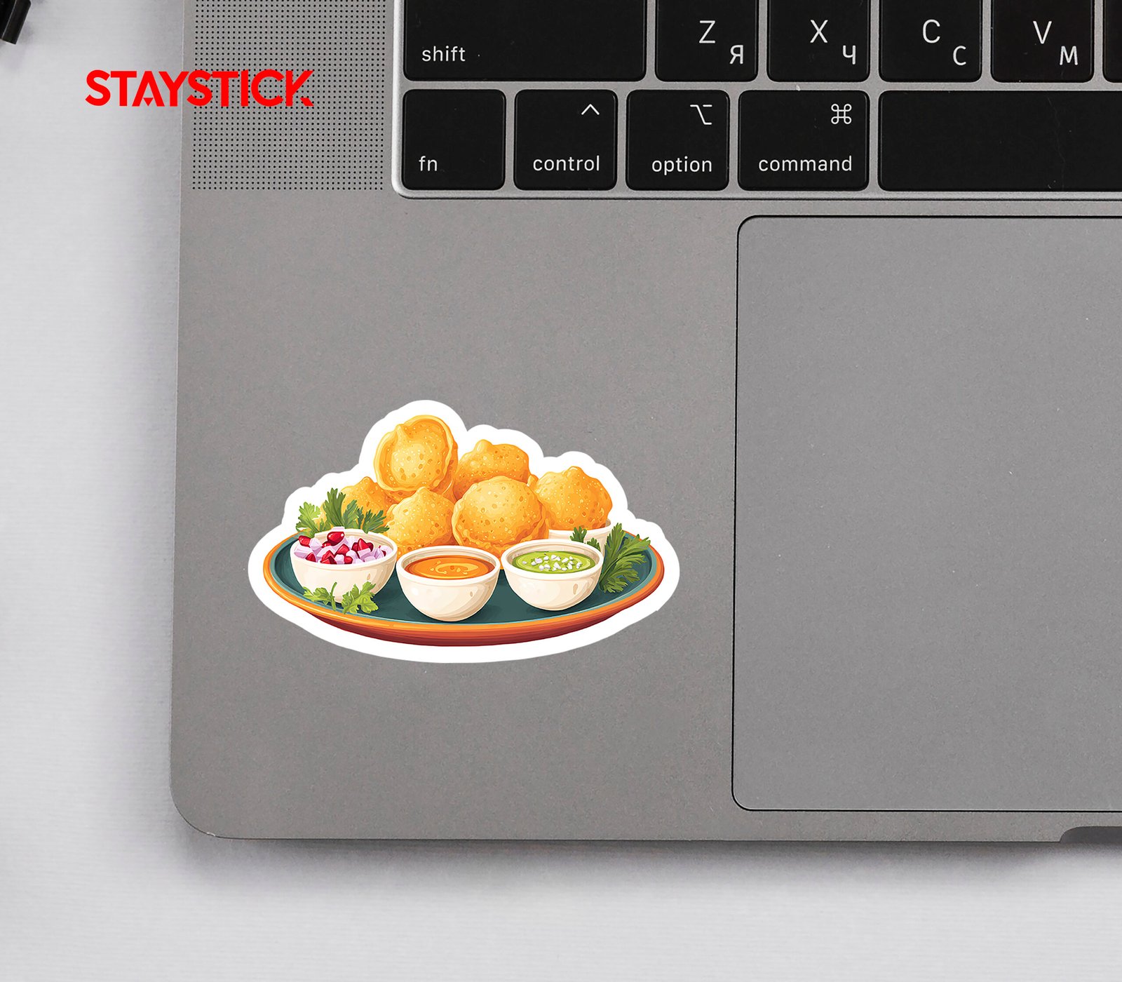 This vibrant sticker showcases a plate of mouthwatering Pani Puri, a popular Indian street food. The sticker features crispy puri shells and a variety of flavorful fillings, including a tangy tamarind chutney, a spicy mint-coriander water, and a savory mixture of potatoes and chickpeas. Perfect for adding a touch of culinary adventure to your laptop, water bottle, or notebook. Show off your love for Indian cuisine with this high-quality, durable sticker.