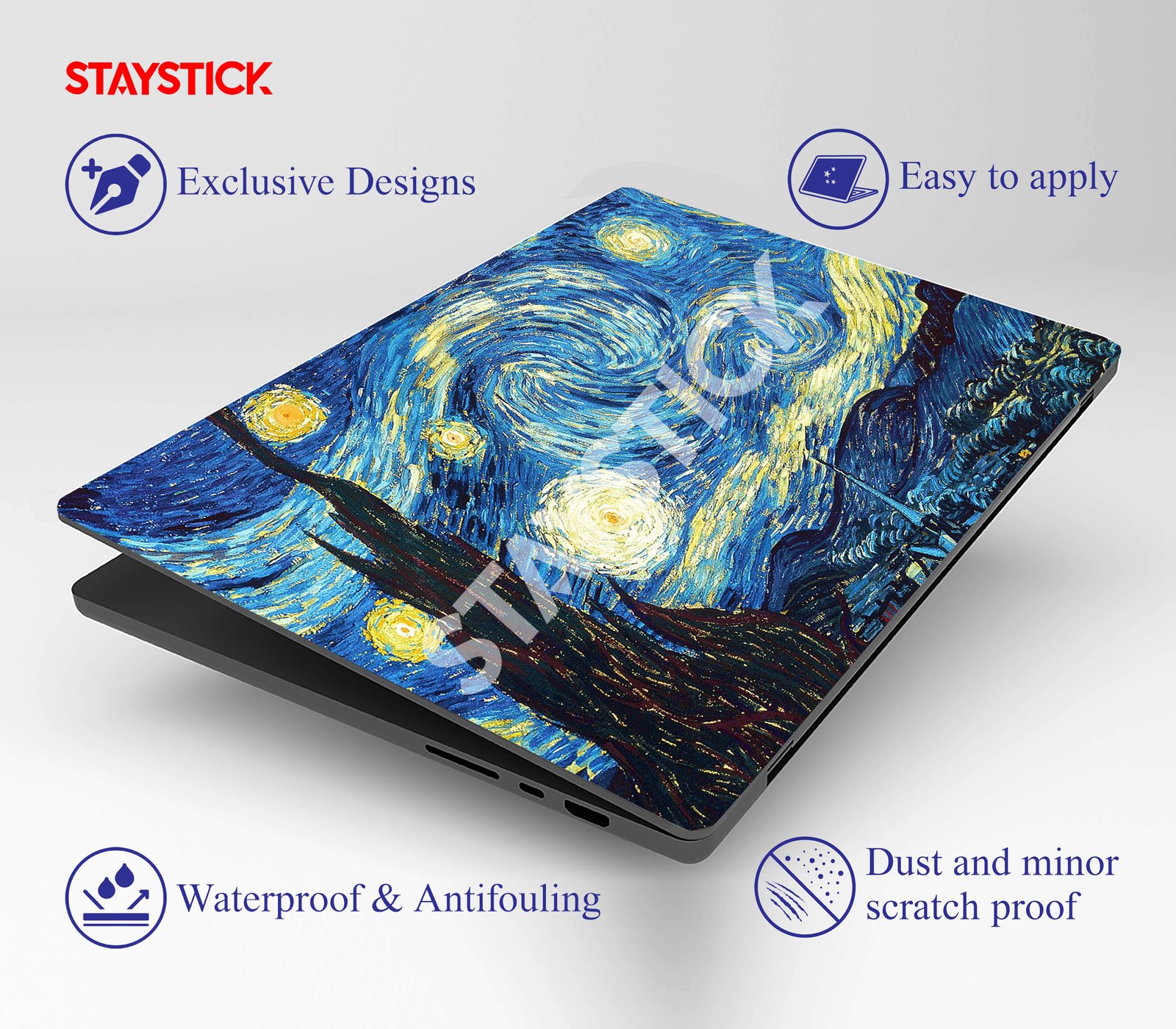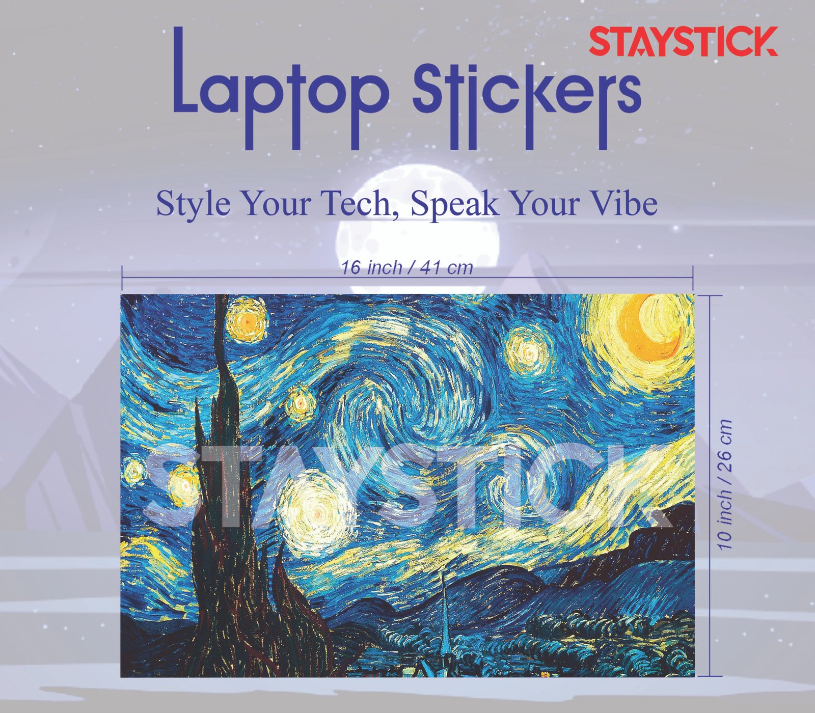 Give your laptop a timeless artistic makeover with this premium sticker featuring Vincent van Gogh’s iconic masterpiece, Starry Night. The swirling skies, radiant stars, and deep blues of this legendary painting create a visually stunning effect that transforms your device into a work of art. Crafted from high-quality, durable vinyl, this laptop skin not only enhances style but also protects your laptop from scratches, dust, and everyday wear. Easy to apply and remove without leaving any residue, it is the perfect choice for art lovers, students, and professionals who want to carry creativity with them wherever they go.