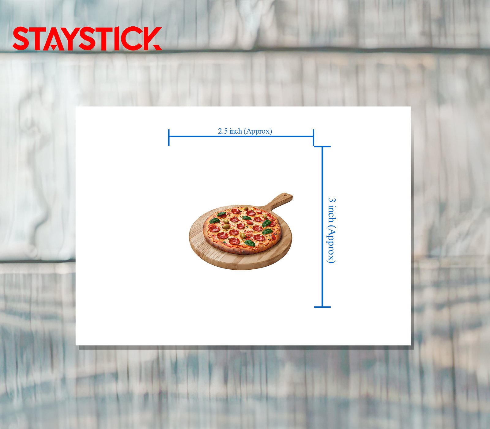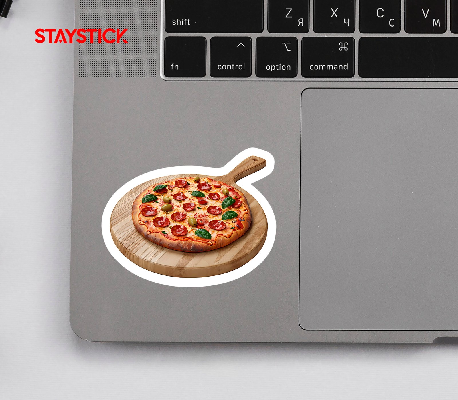 This vibrant, high-quality sticker features a mouthwatering image of a pepperoni pizza, complete with melted cheese, fresh basil leaves, sliced tomatoes, and green olives on a wooden pizza peel. The detailed design and bright colors make it a fun addition to laptops, water bottles, notebooks, and more. Show off your love for pizza with this durable and waterproof sticker!