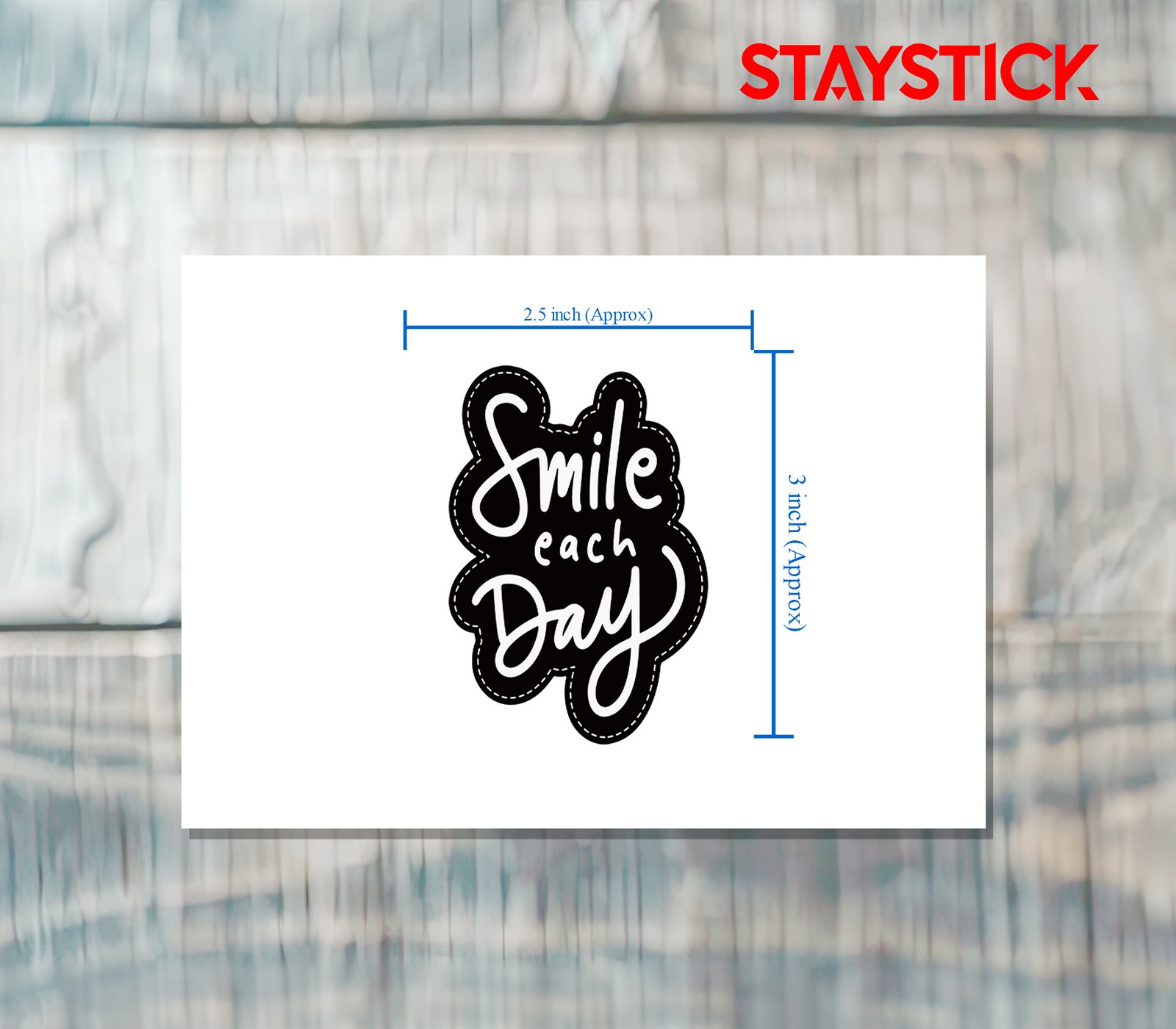 “This inspiring sticker features the uplifting phrase ‘Smile Each Day’ written in a beautifully flowing white hand-lettered style against a bold black background. Surrounded by a playful dotted outline, the design radiates positivity and charm, making it a perfect reminder to embrace joy and gratitude in everyday life. Whether placed on laptops, notebooks, water bottles, or phone cases, this sticker serves as a daily dose of motivation, encouraging you and those around you to find happiness in the little moments and keep smiling through life’s journey.”