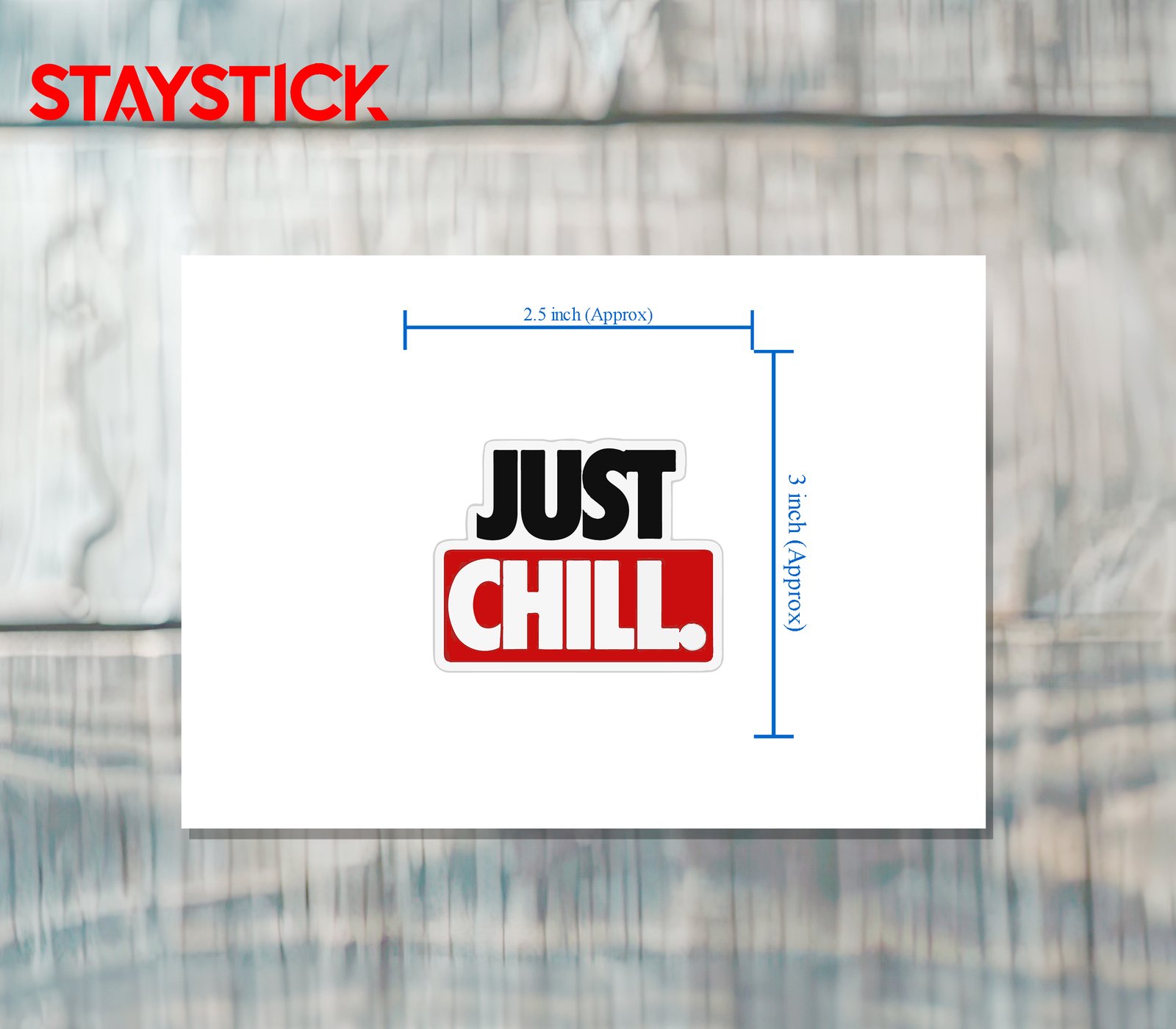 This stylish sticker delivers a cool and confident vibe with its “Just Chill.” text design. It’s a perfect way to express a laid-back attitude, promote stress-free living, or add a touch of motivation to your everyday surroundings.
