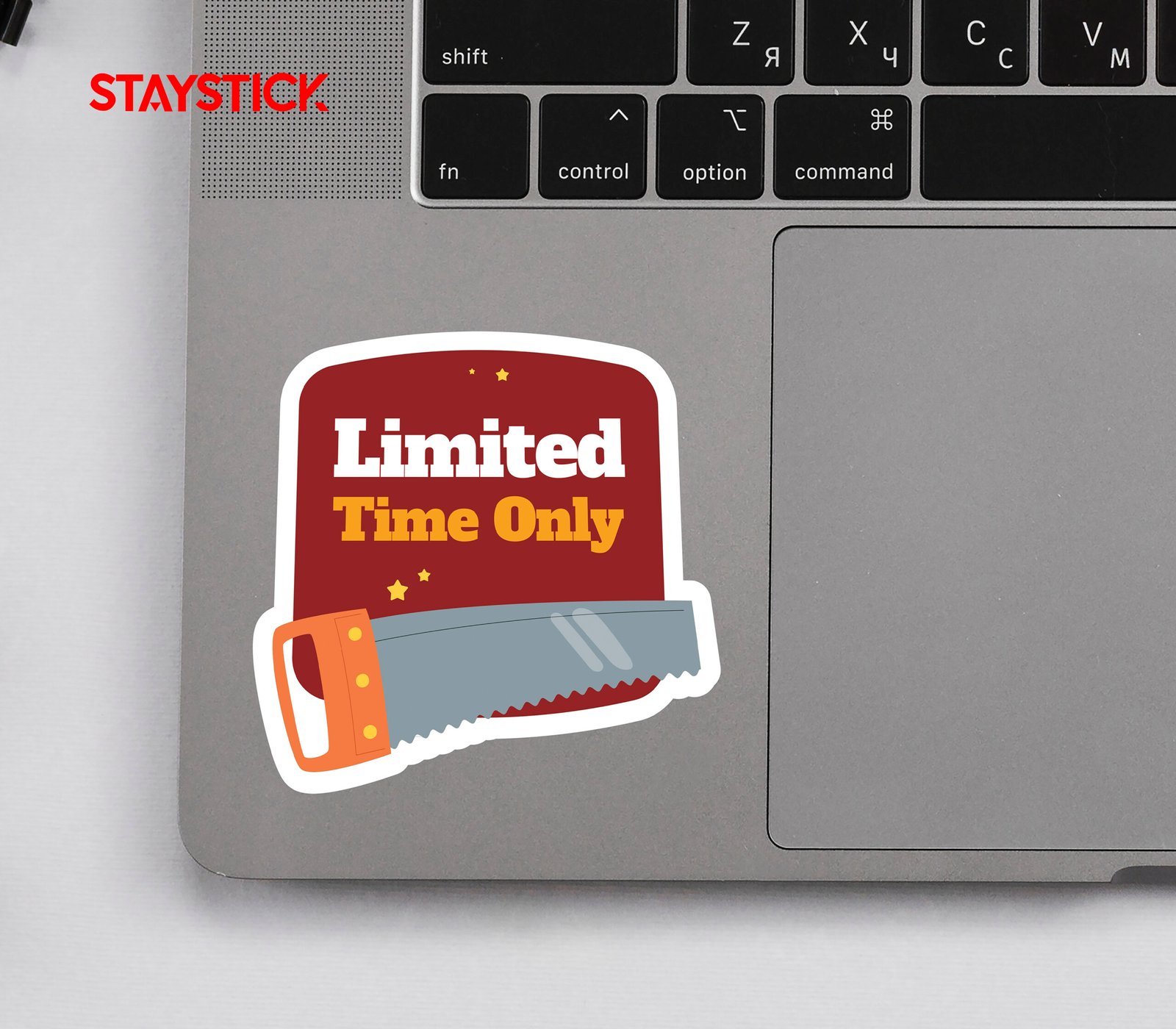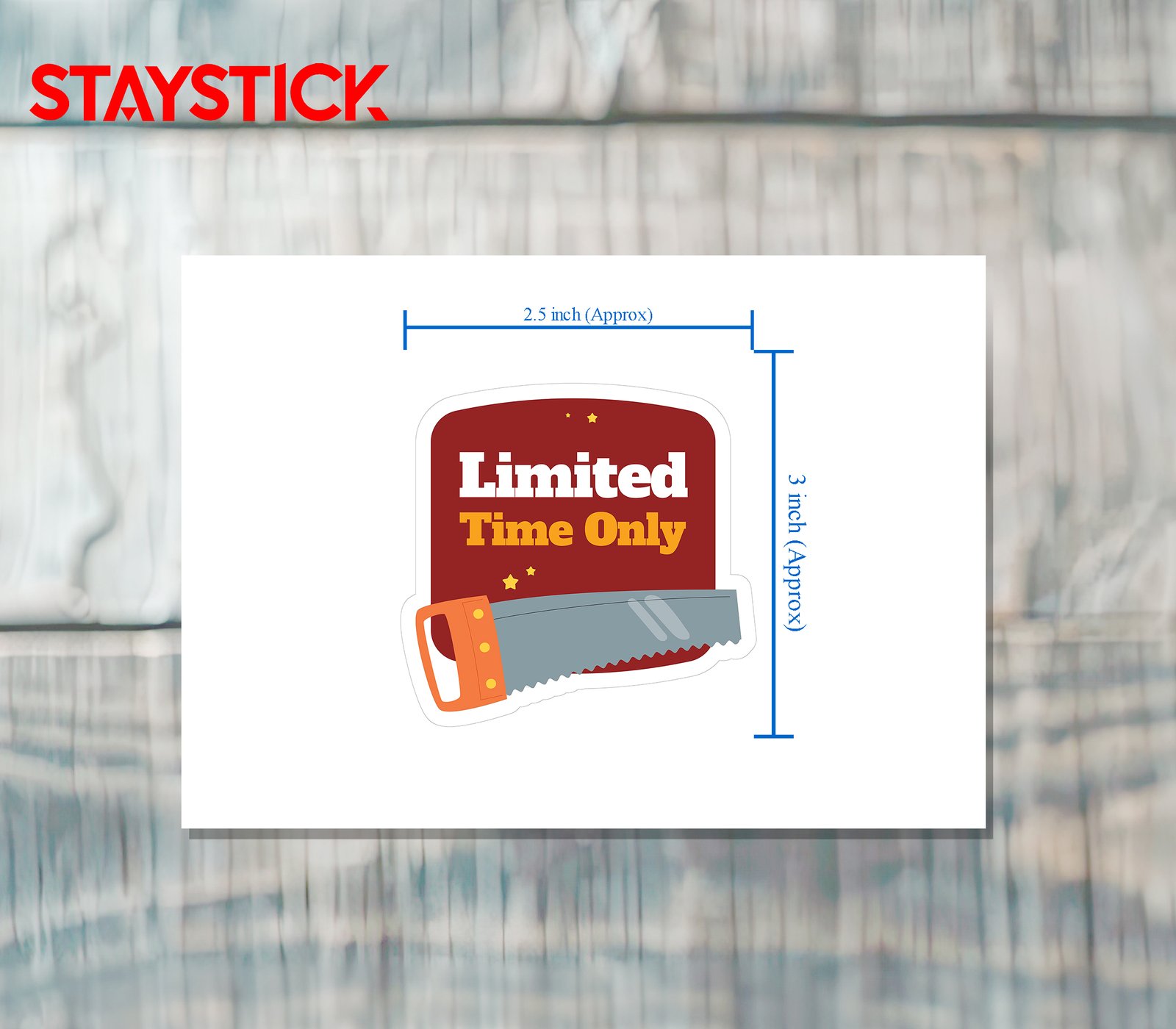 “Bold promotional sticker with the text Limited Time Only, designed in red with a saw graphic to grab attention for special offers.”