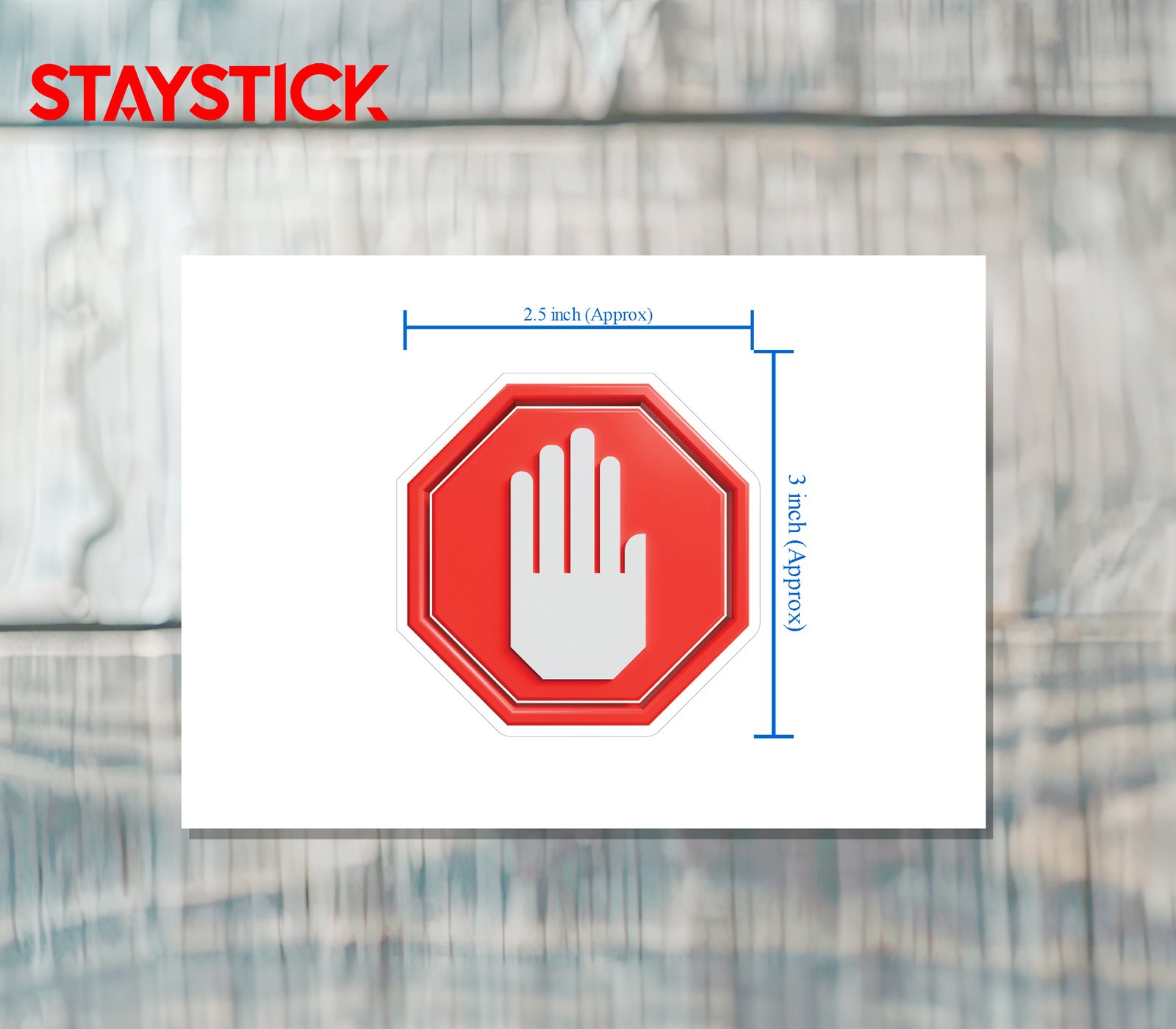 “This sticker features a red octagon with a white raised hand symbol, universally recognized as a stop or halt instruction. It serves as a clear visual indicator to pause, ensuring safety in restricted areas, hazardous zones, and controlled environments.Designed for maximum visibility, the hand stop sign sticker combines the octagonal red background with a bold hand symbol, making it easy to understand across languages and cultures. Ideal for traffic regulation, workplace safety, and restricted access points, this durable sticker helps prevent accidents and maintain order by reminding individuals to stop before proceeding.”