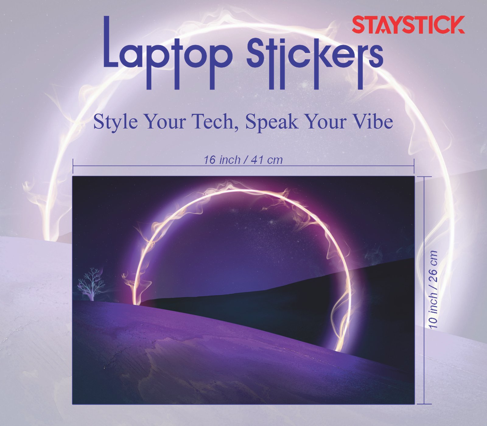 Transform the look of your laptop with this stunning cosmic-themed laptop skin, designed to bring a perfect blend of style and protection. Featuring a mesmerizing glowing neon arc against a dreamy night sky and landscape, this skin creates a futuristic, artistic vibe that instantly makes your device stand out.