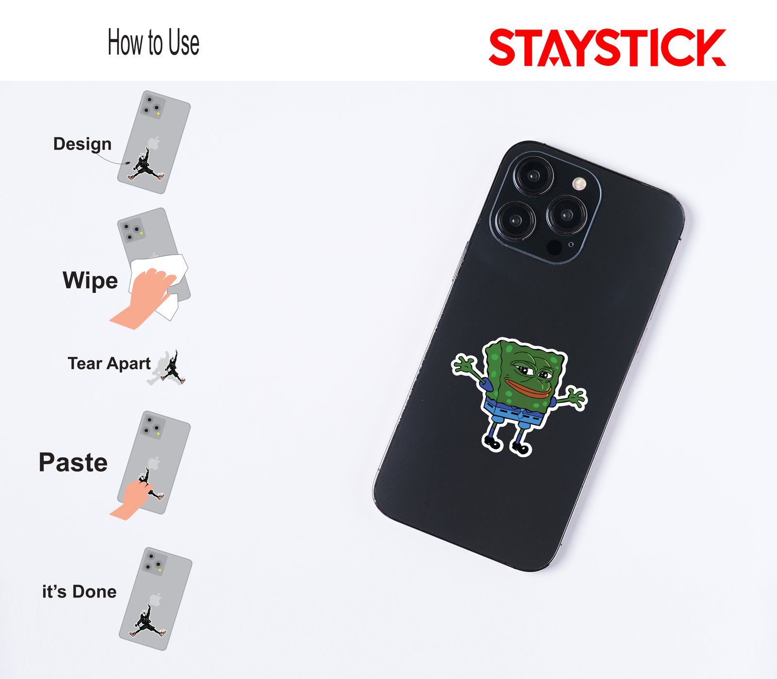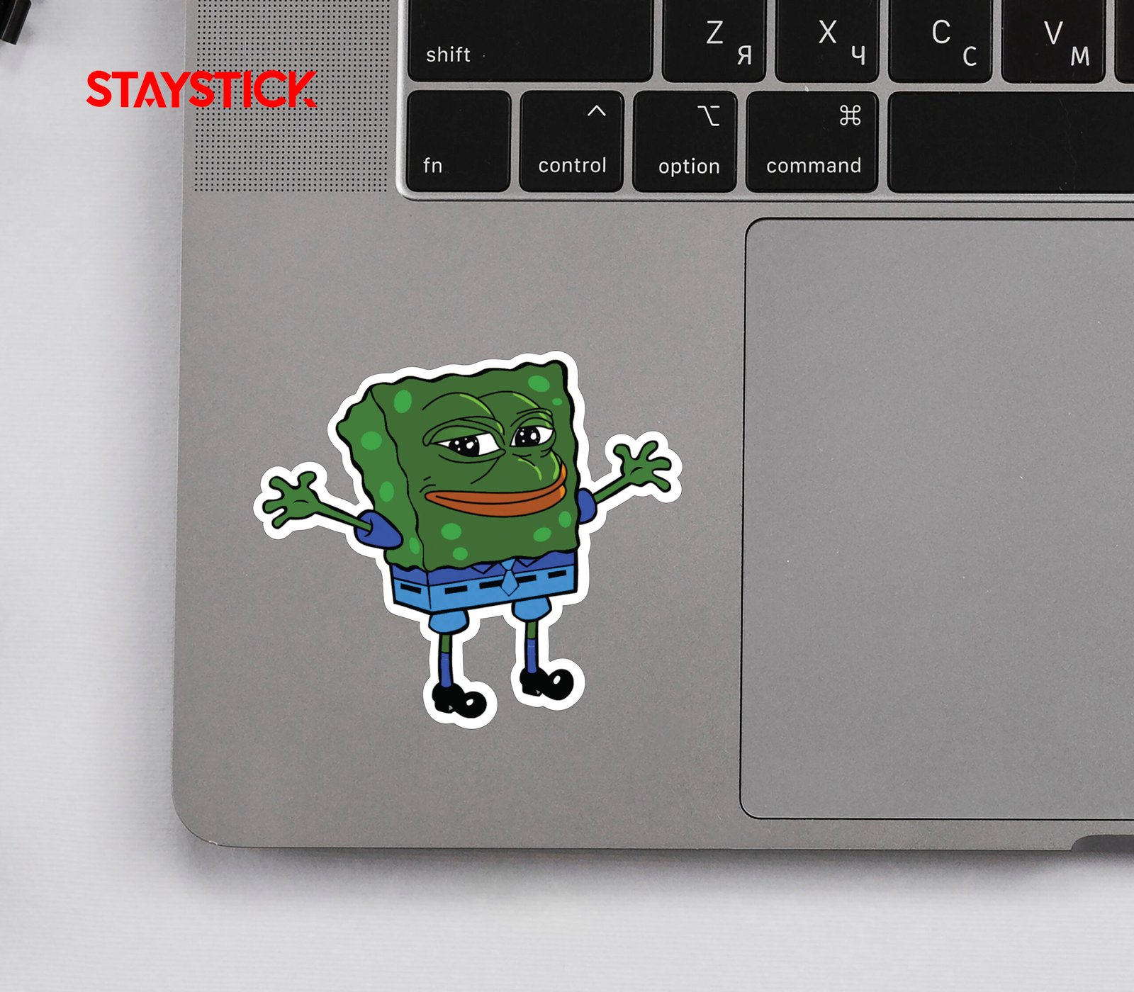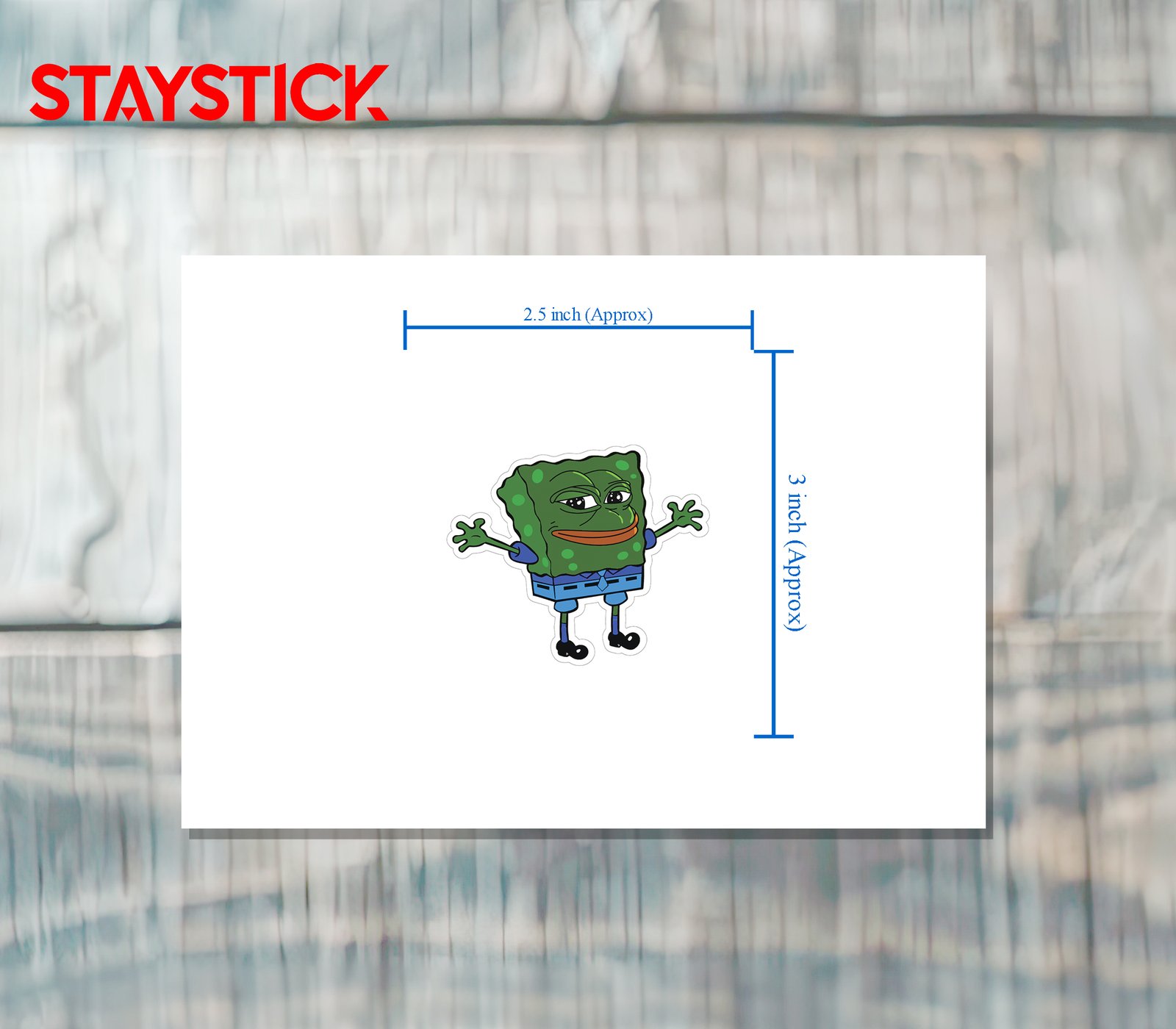 This high-quality vinyl sticker combines the iconic Spongebob Squarepants character with the popular Pepe the Frog meme. Featuring Spongebob with Pepe’s signature sad, knowing expression, this sticker is perfect for adding a touch of internet culture to your laptop, water bottle, or notebook. Made with durable, waterproof vinyl, this meme sticker is built to last and sure to get a laugh. Great for collectors and fans of internet humor. This sticker would be a great present for meme addicts or anyone that likes Spongebob Squarepants.