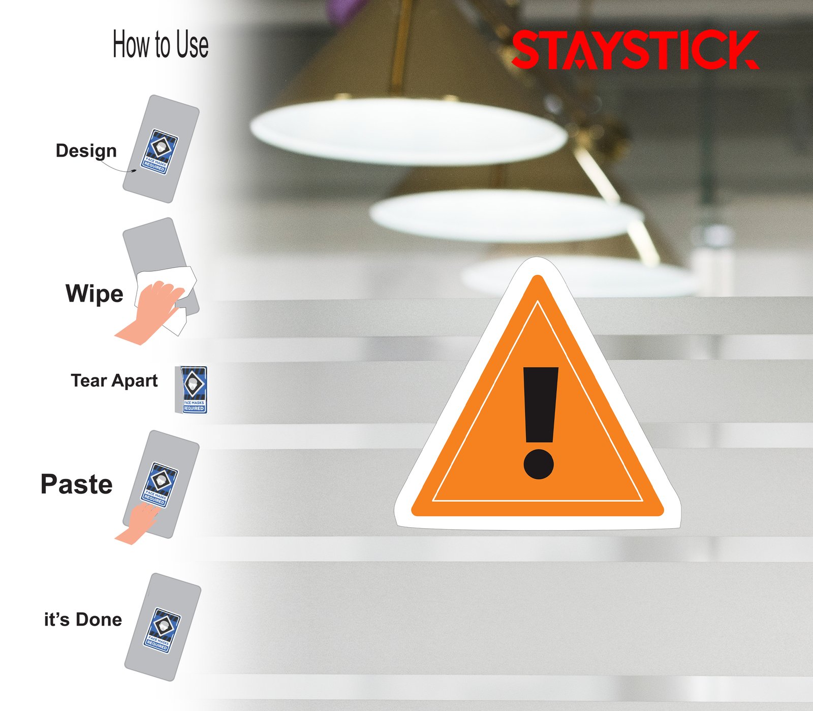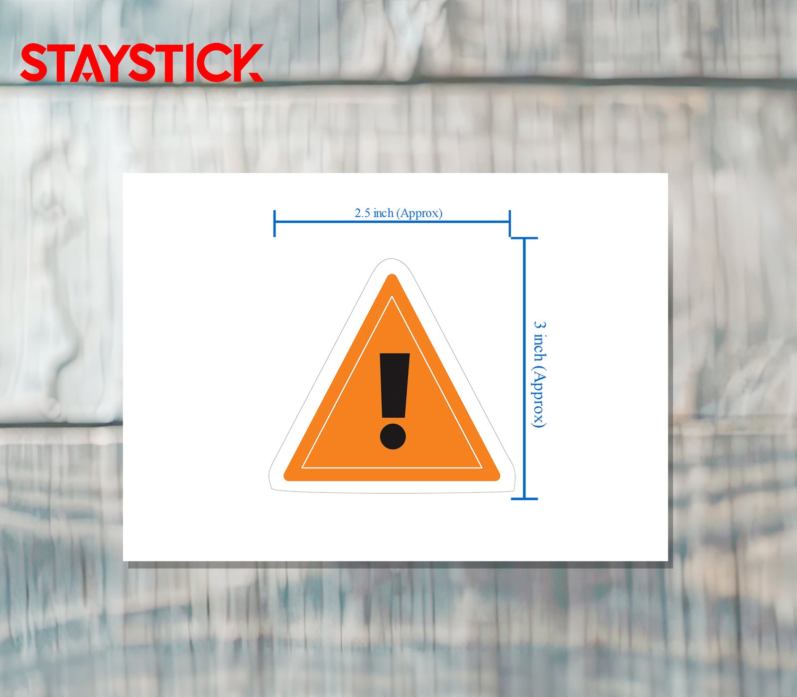 “This sticker features a bold black exclamation mark inside an orange triangle with a white outline, universally recognized as a warning or caution sign. It alerts individuals to potential risks, hazards, or important safety information that requires attention. Commonly used in workplaces, factories, laboratories, construction sites, and public spaces, this symbol ensures that people remain alert and aware of possible dangers. The striking orange and black design enhances visibility, making it effective for promoting awareness and preventing accidents.”