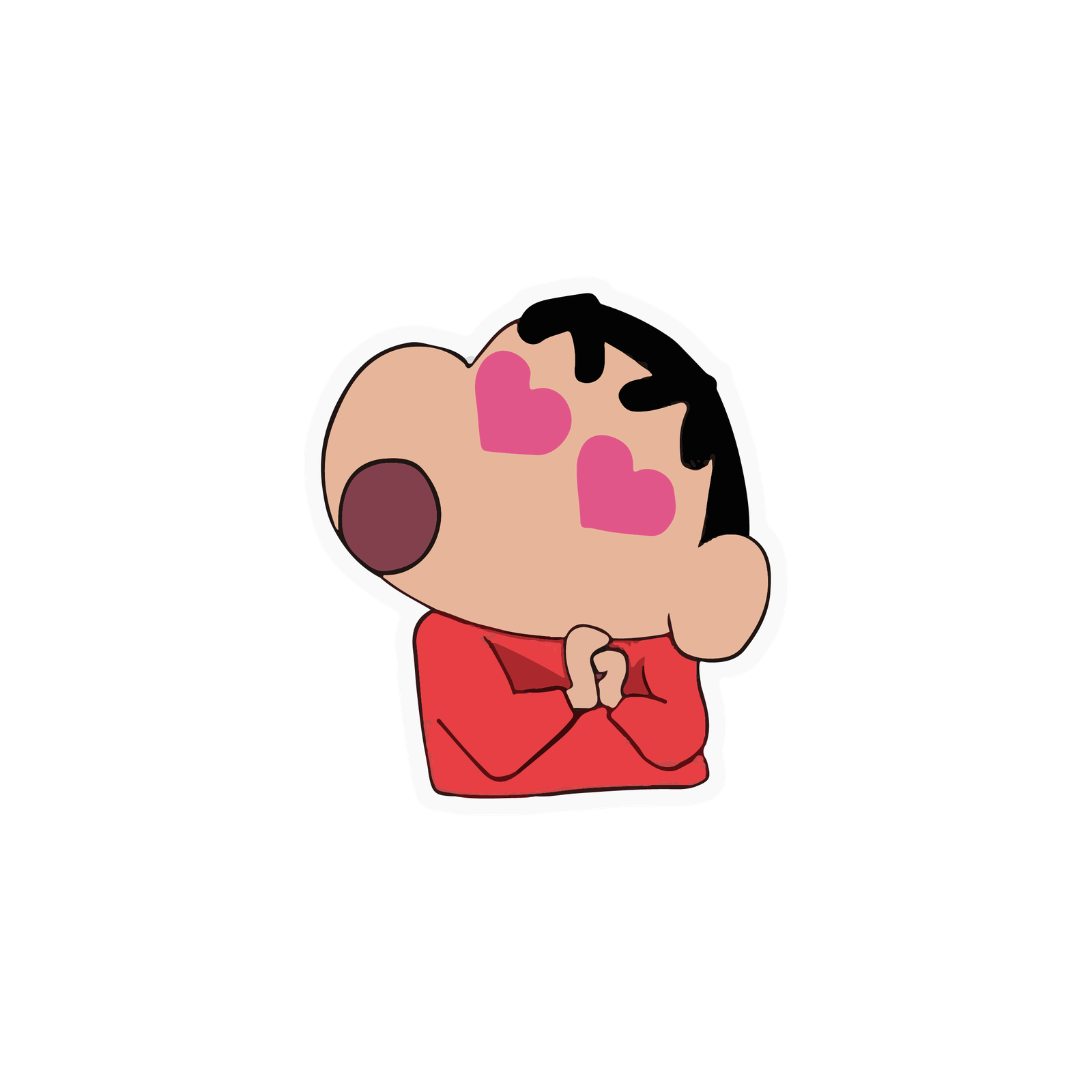 Cute Shin-Chan sticker with heart eyes. Perfect for fans of the popular anime series.
