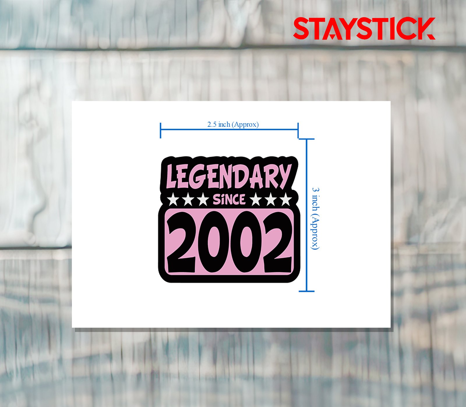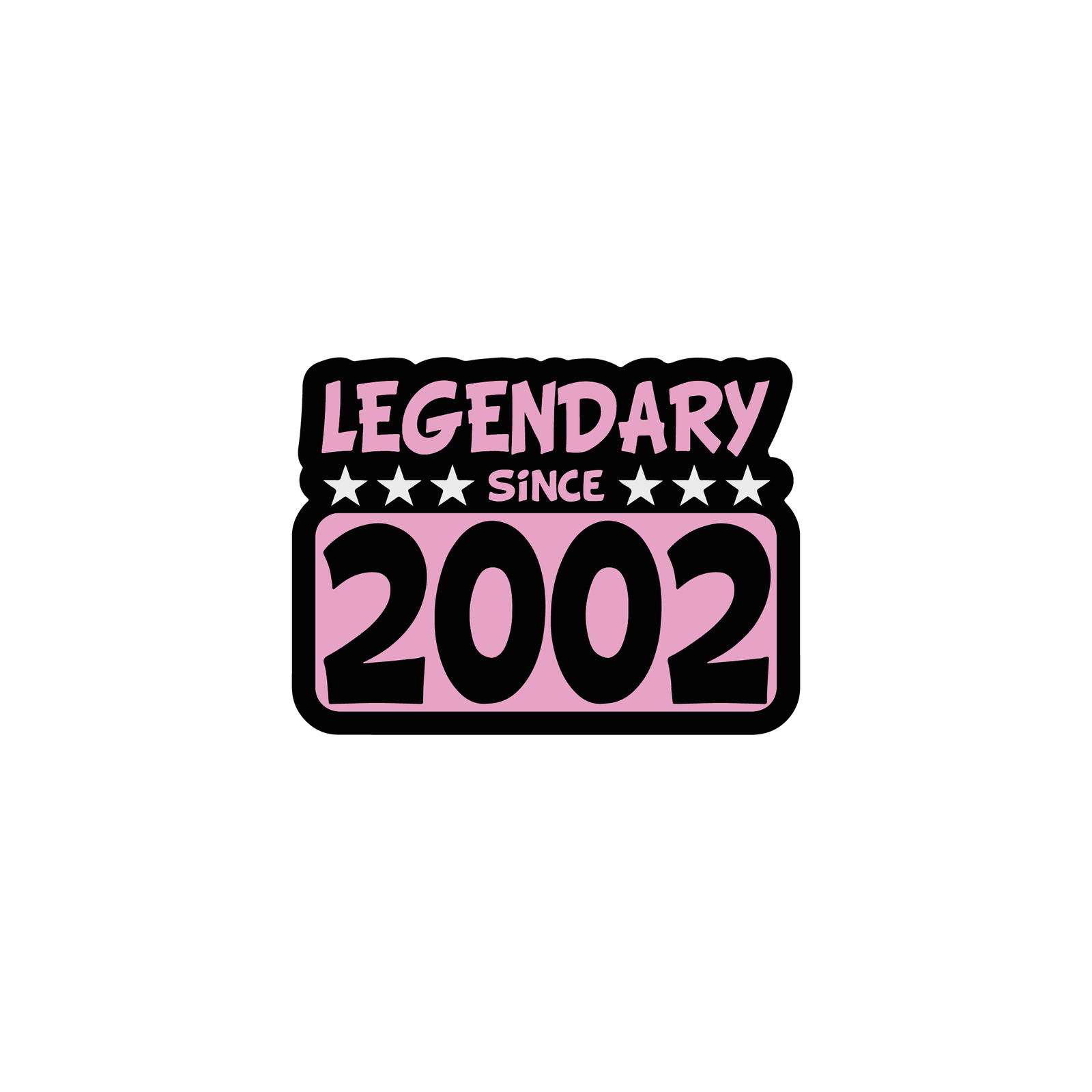 This sticker proudly displays the phrase “Legendary Since 2002” in a bold and eye-catching design. The word Legendary is highlighted at the top in a playful font, followed by the word Since surrounded by stars, giving it a celebratory and iconic vibe. The large number 2002 stands out in striking black text against a soft pink background, making it the centerpiece of the design. With its combination of strong lettering, vibrant colors, and decorative stars, this sticker is perfect for showcasing pride in the year 2002—whether it marks a birth year, an anniversary, or another special beginning. It’s a fun, stylish, and empowering way to represent someone or something that has been “legendary” since that year.