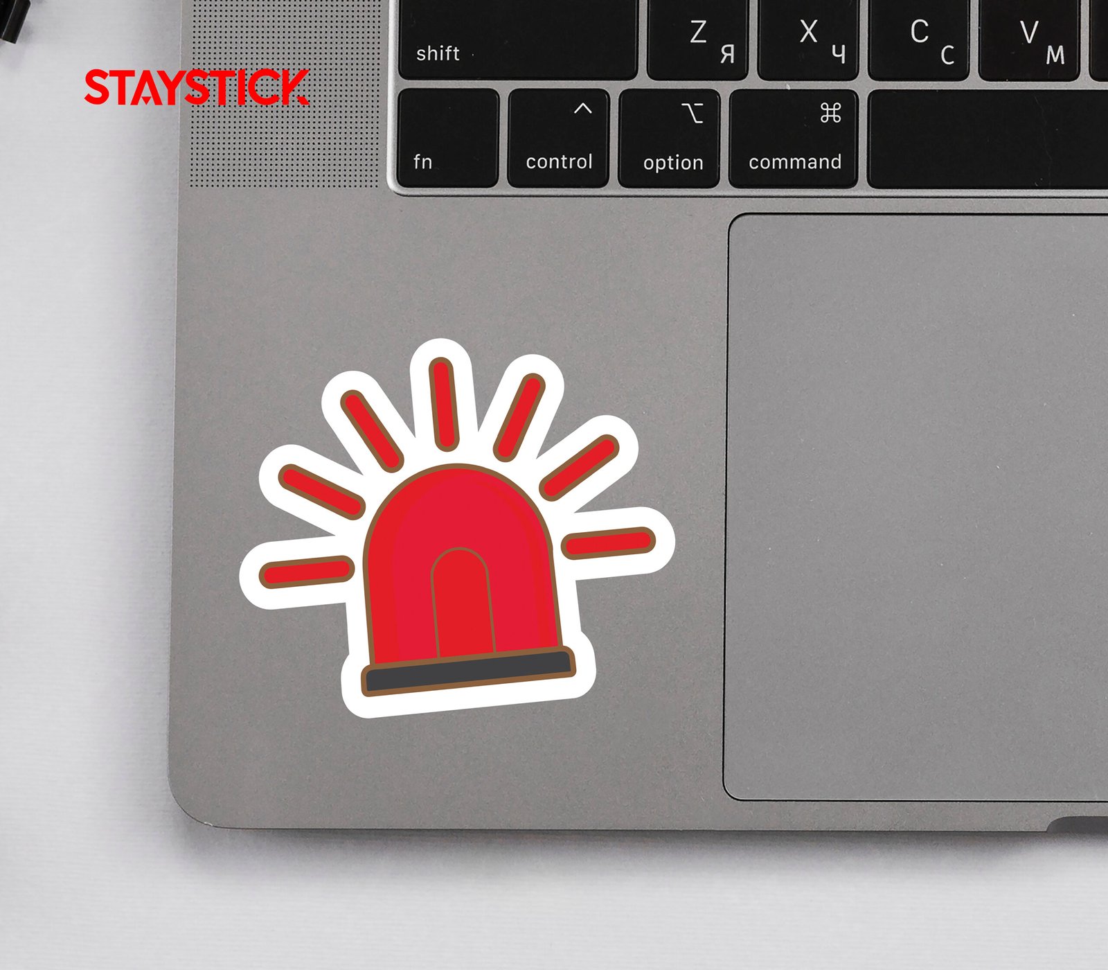 “Red emergency siren sticker symbolizing alert or warning.Alarm light icon used for emergencies and hazards.Flashing red beacon sticker for safety alerts.”