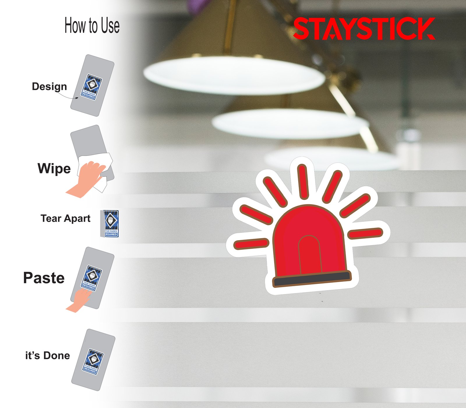“This sticker features a bright red emergency siren light with radiating beams, symbolizing an urgent alert or warning. It is commonly associated with alarms, hazards, or situations requiring immediate attention. Often used in safety manuals, workplaces, hospitals, or emergency signage, this sticker acts as a visual representation of danger, evacuation alerts, or critical conditions. Its striking red color and alarm design make it highly noticeable, ensuring people quickly recognize the need for caution or immediate response.”