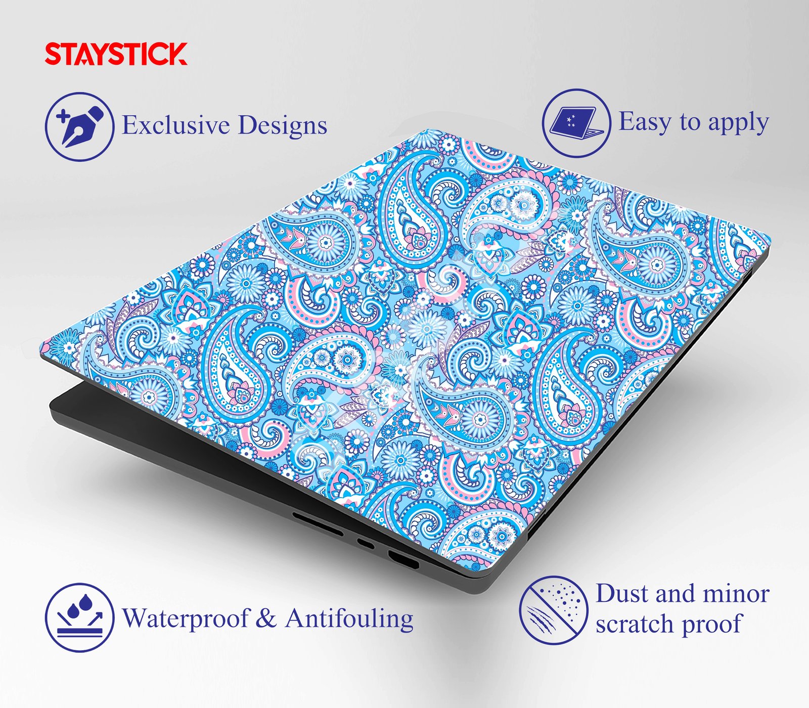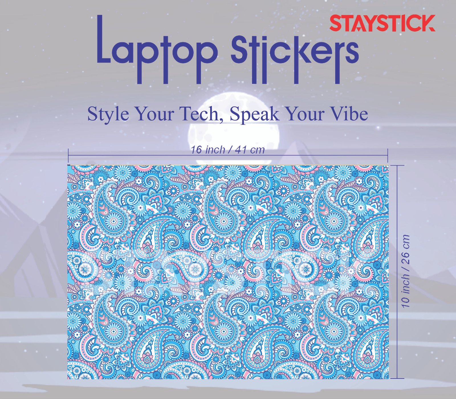 This laptop sticker features a beautifully detailed paisley pattern, blending shades of blue, purple, and pink into a lively yet elegant design. The intricate floral and teardrop motifs create a timeless artistic look that perfectly balances modern style with traditional charm. Made from high-quality vinyl, the skin provides scratch and dust protection while giving your laptop a fashionable makeover. Its bubble-free application ensures a smooth finish, and it can be easily removed without leaving any residue. Ideal for students, professionals, and creatives, this paisley laptop skin turns your device into a canvas of culture, style, and personality.