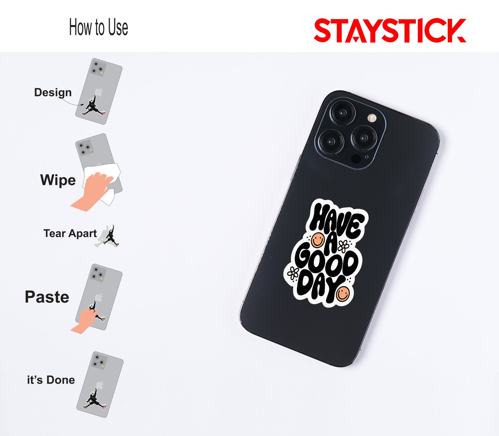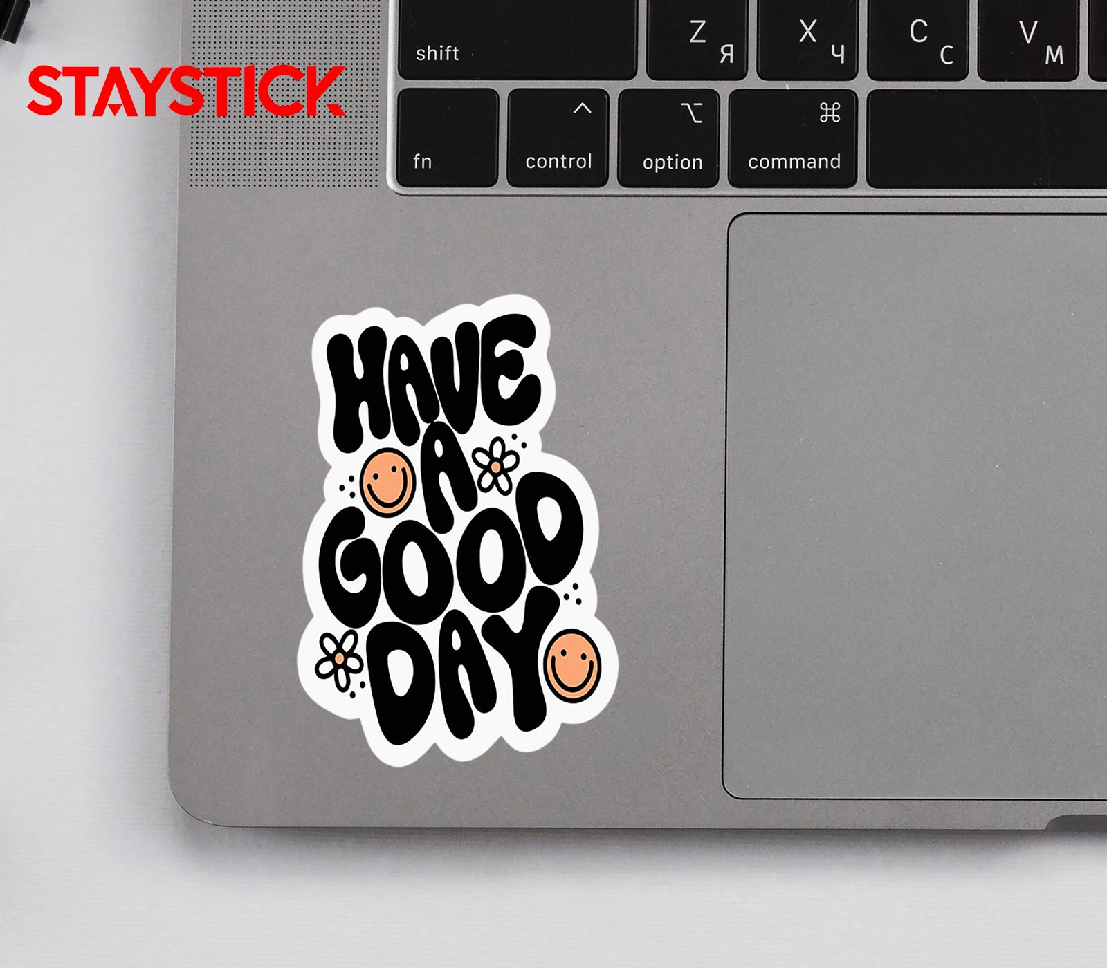 This sticker carries a bright and cheerful design with the phrase “Have a Good Day” written in bold, retro-style black lettering outlined in white. Surrounding the text are playful orange smiley faces and simple daisy-like flowers, adding a touch of joy and warmth. The combination of happy icons and friendly typography makes this sticker perfect for spreading positivity and good vibes. Whether placed on a laptop, notebook, water bottle, or phone case, it serves as a daily reminder to stay cheerful and optimistic, making it both decorative and motivational.