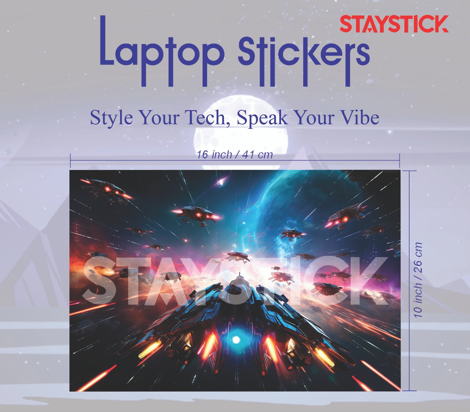 Transform your laptop into a portal to another galaxy with this striking space battle laptop sticker. Featuring a fleet of futuristic starships engaged in an intergalactic fight, the design bursts with vibrant cosmic colors, glowing thrusters, and dynamic laser trails. Crafted from premium, durable vinyl, this laptop skin not only enhances your device with a bold sci-fi aesthetic but also shields it from scratches, dust, and everyday wear. Easy to apply and remove without residue, this laptop sticker is the ultimate accessory for gamers, sci-fi lovers, and anyone who wants to showcase their futuristic style.
