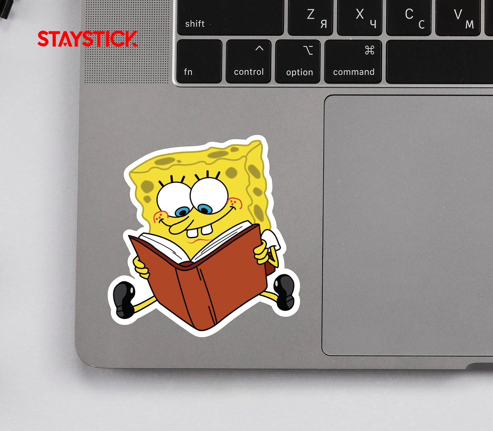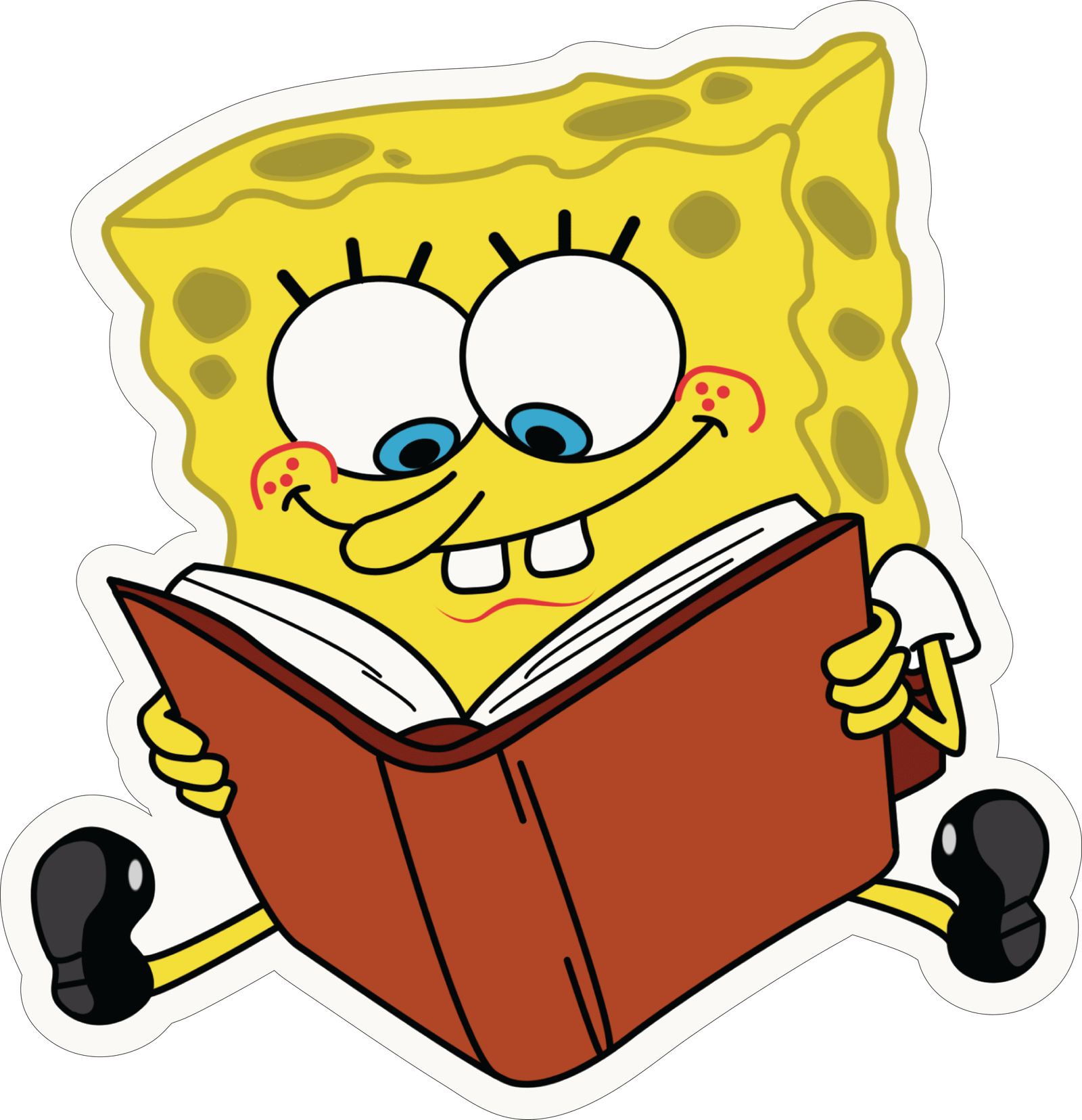 Adorable SpongeBob SquarePants sticker reading a book. Perfect for laptops, water bottles, and more!