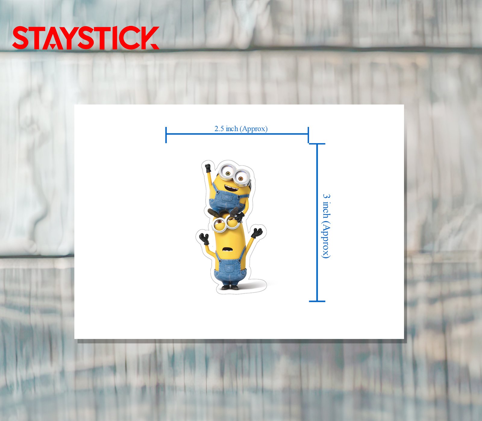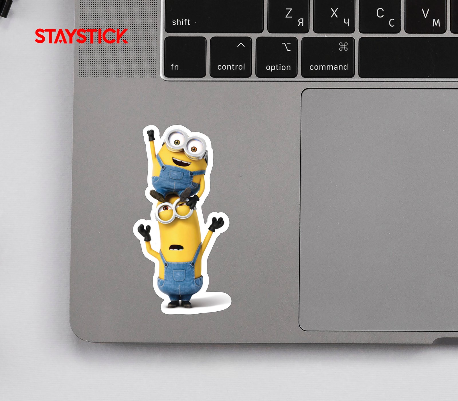 Add some mischievous fun to your belongings with this vibrant Minions sticker! Featuring two Minions from Despicable Me, one stacked atop the other, this durable vinyl sticker is perfect for personalizing laptops, water bottles, notebooks, and more. Its high-quality design ensures long-lasting color and adherence. A great gift for Minion enthusiasts of all ages!