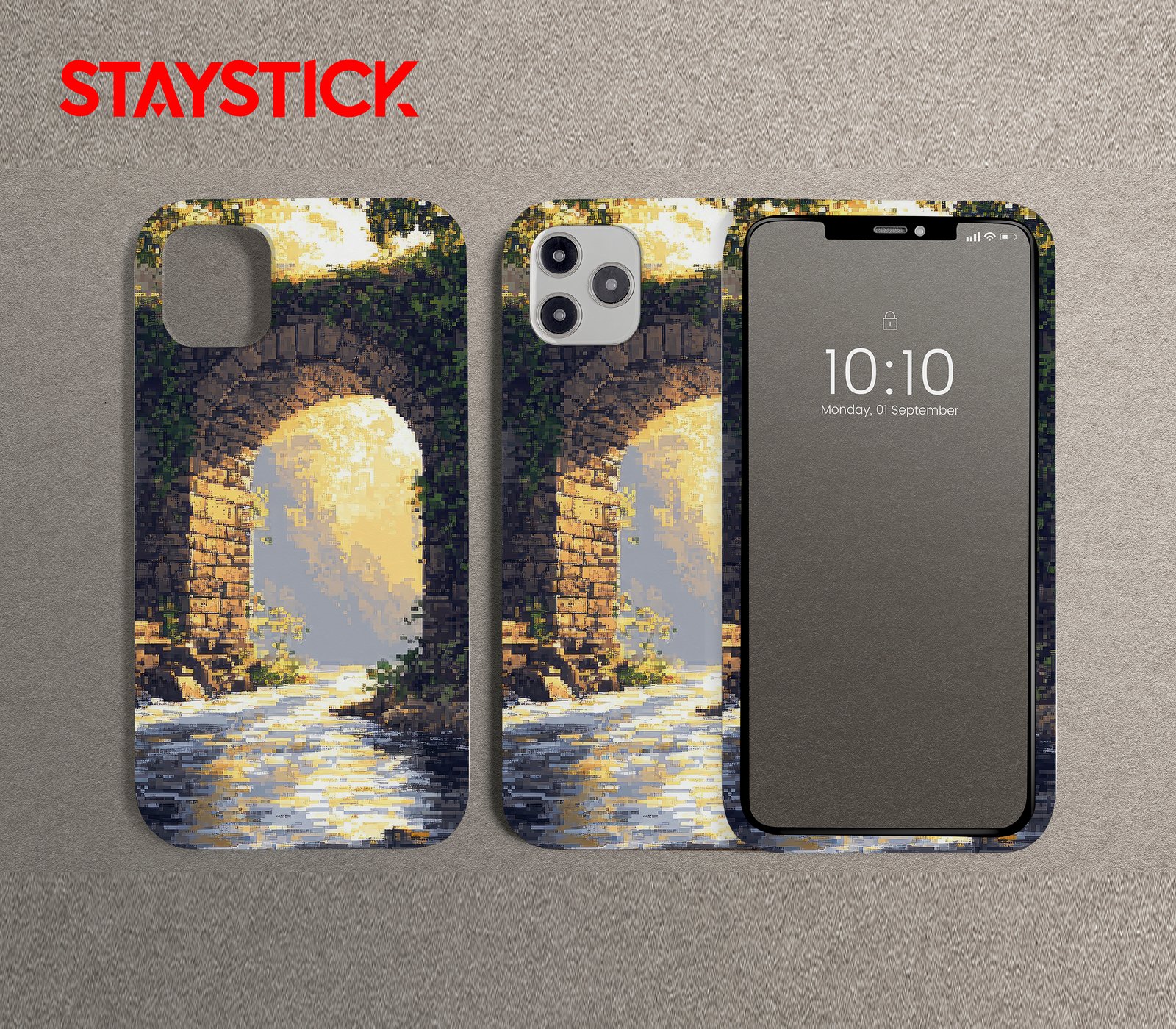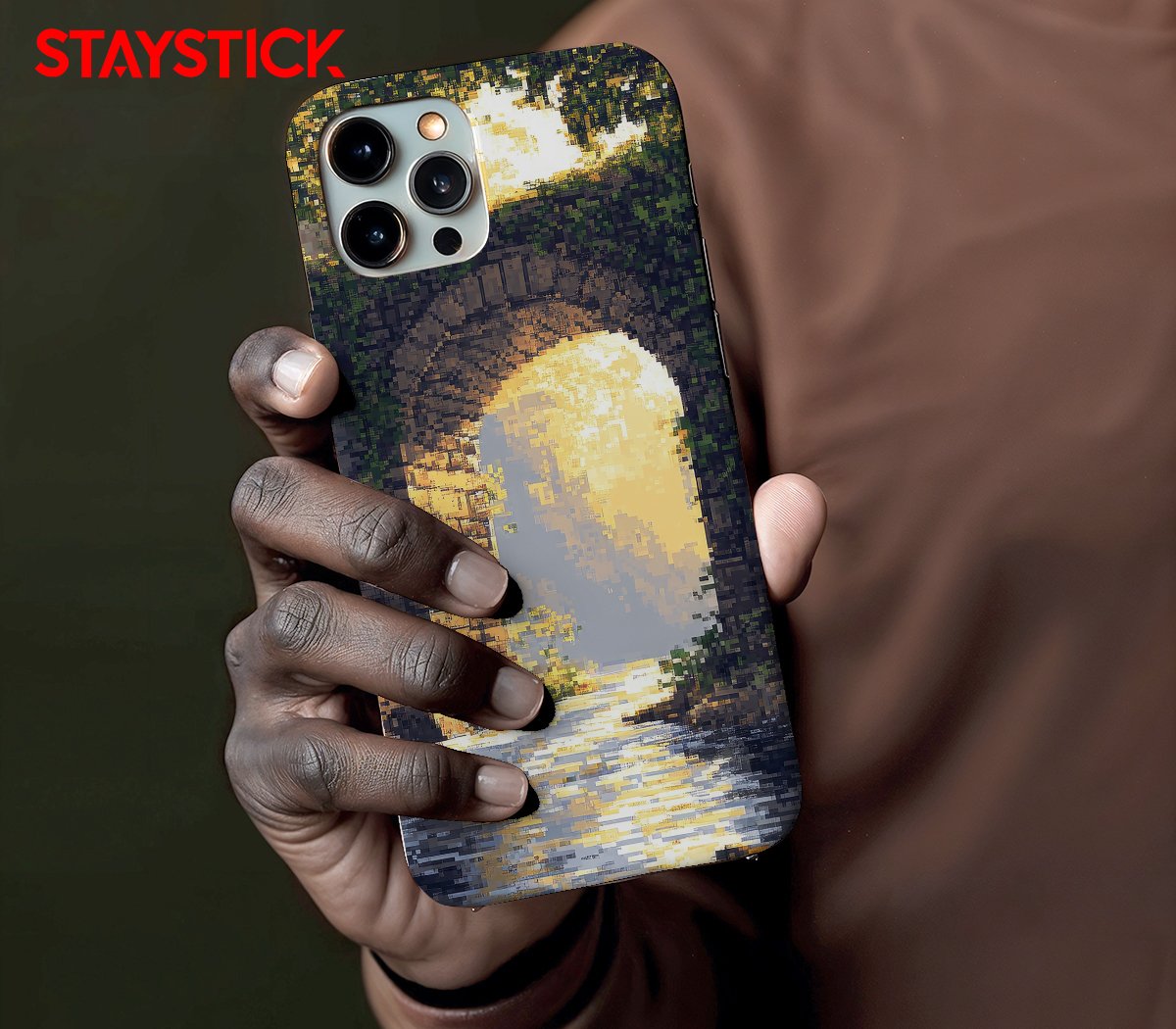 This premium mobile back sticker captures a breathtaking scene of nature and architecture in perfect harmony. The design depicts a classic stone arch bridge over calm water, bathed in the glow of warm golden sunlight. The artwork is uniquely rendered in a digital pixelated style, blending traditional scenery with a modern, abstract touch. Crafted with high-quality vinyl, this skin not only enhances your phone’s aesthetics but also protects it from scratches and fingerprints. Ideal for those who appreciate nature-inspired, artistic, and timeless designs, this mobile sticker turns your phone into a portable canvas of tranquil beauty.