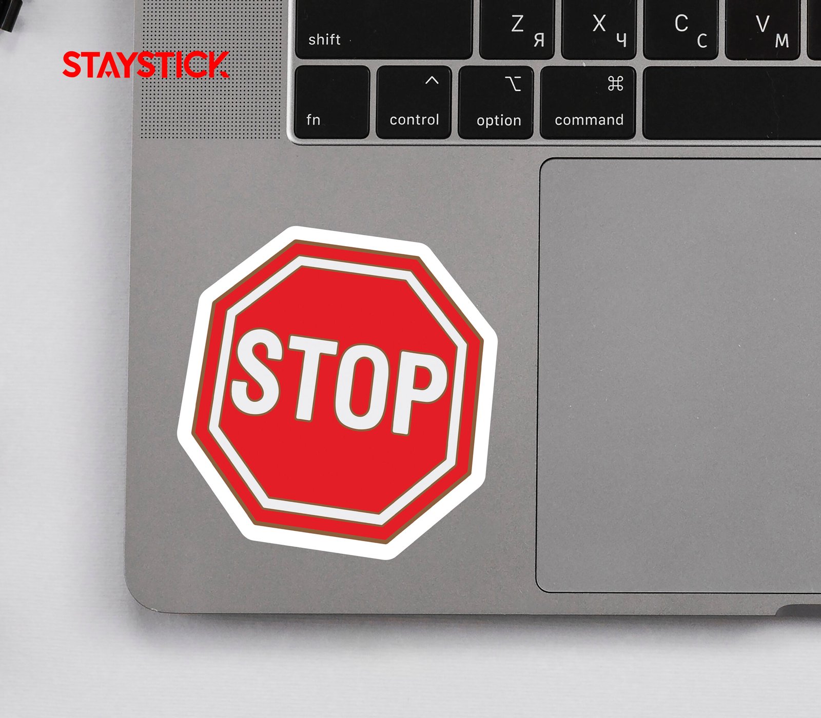 “Classic red STOP sign sticker for safety and traffic control.Octagonal red stop sticker used for warnings and instructions.Bold STOP symbol for halting movement or signaling caution.”