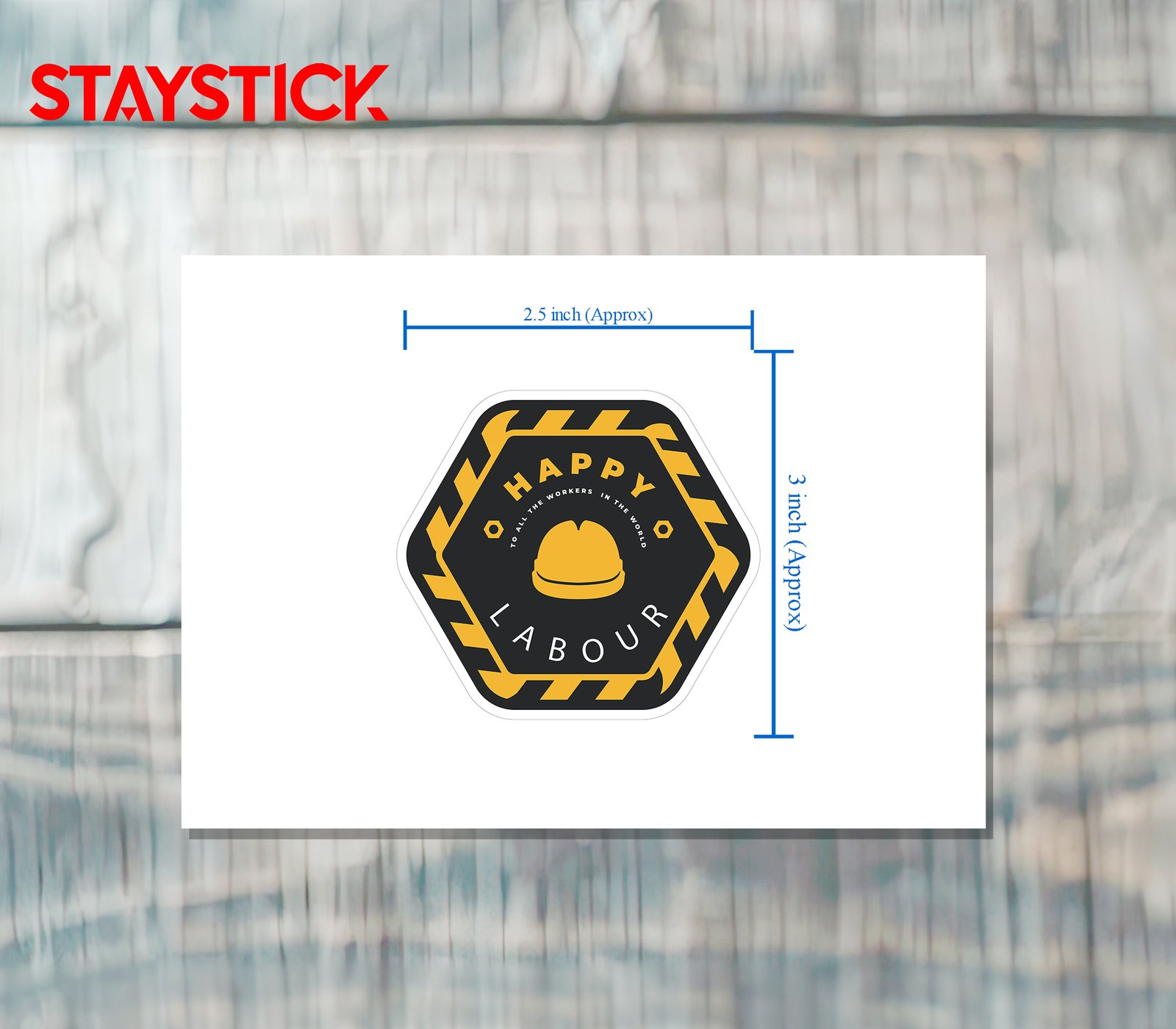 “This uniquely designed Labour Day sticker pays tribute to workers across the globe with the message Happy Labour – To All the Workers in the World. The hexagon shape with black and yellow caution-style stripes symbolizes strength, safety, and resilience. At the center, a protective hard hat highlights the importance of workers in building and sustaining society. With its bold and professional design, this sticker is perfect for workplace decorations, event giveaways, safety campaigns, or personal use on laptops, toolboxes, and notebooks. It serves as a meaningful reminder of respect, gratitude, and appreciation for the dedication and hard work of every worker.”
