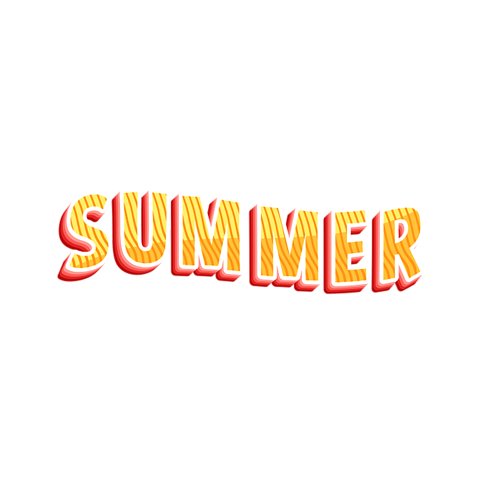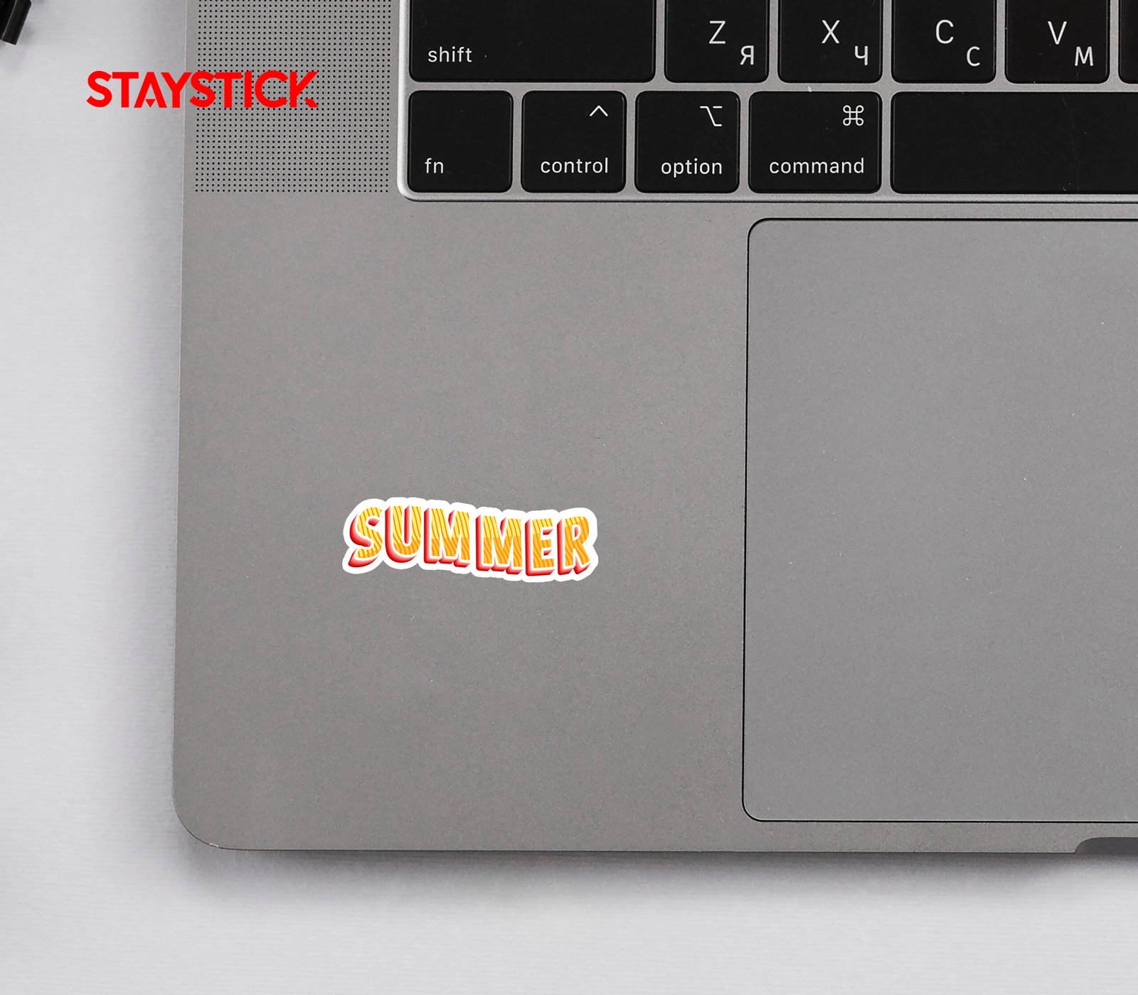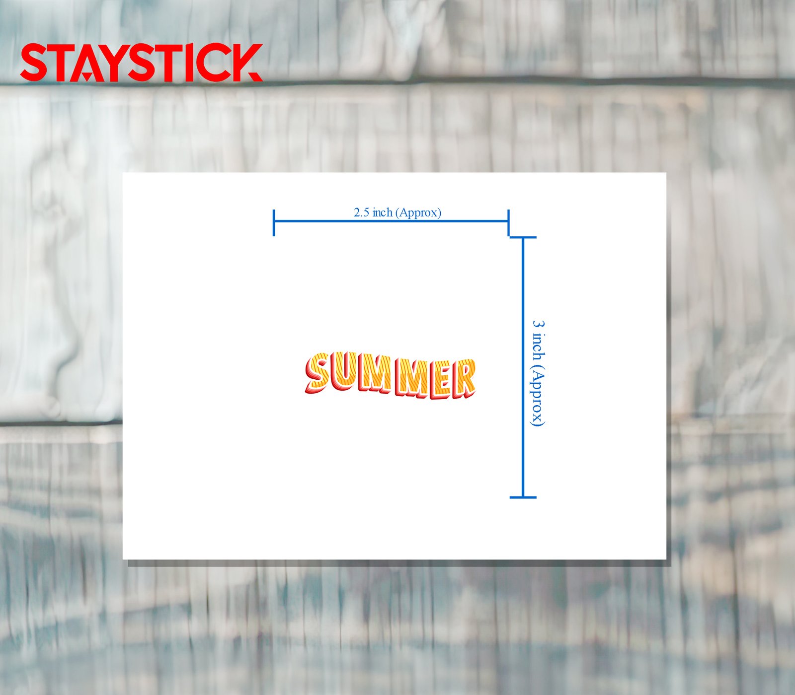 Bold retro “SUMMER” sticker with warm orange stripes.