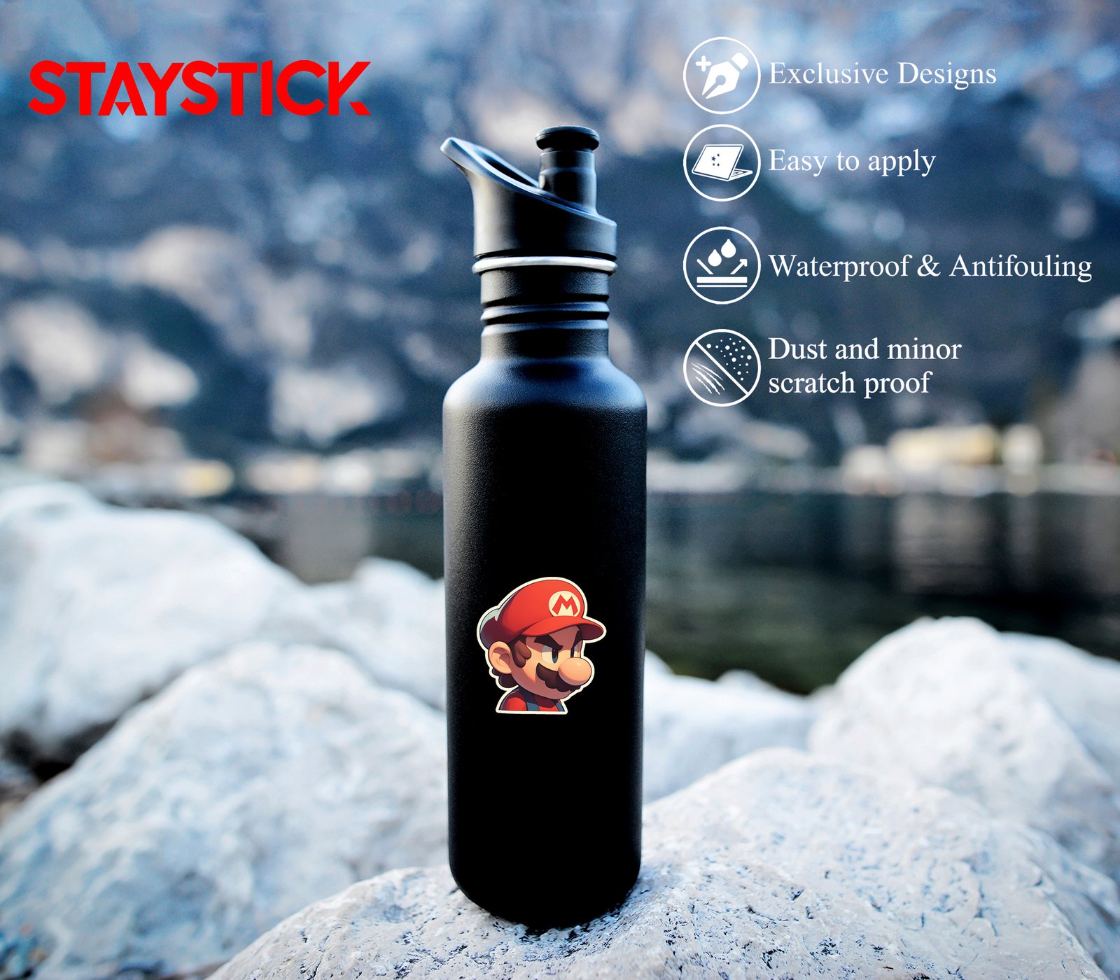 Durability: Suitable for indoor & outdoor use (laptops, water bottles, scooters, helmets, etc.)