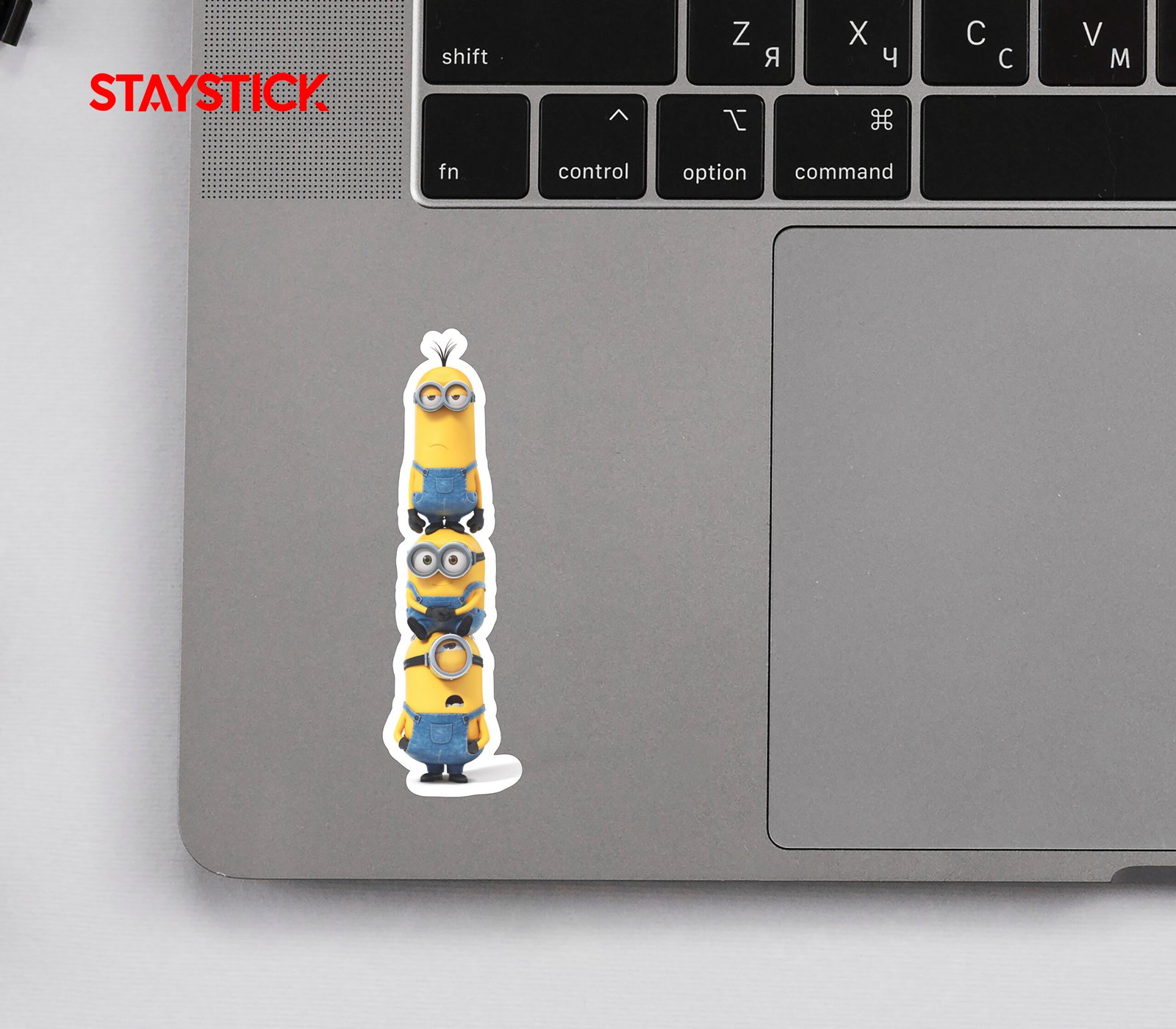 Fun sticker featuring three stacked Minions from Despicable Me, perfect for fans!