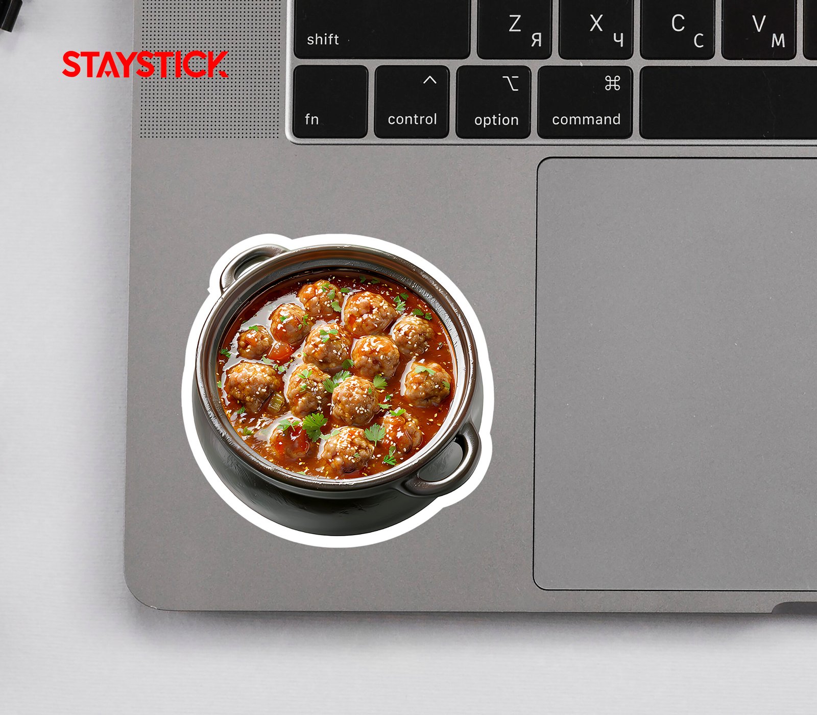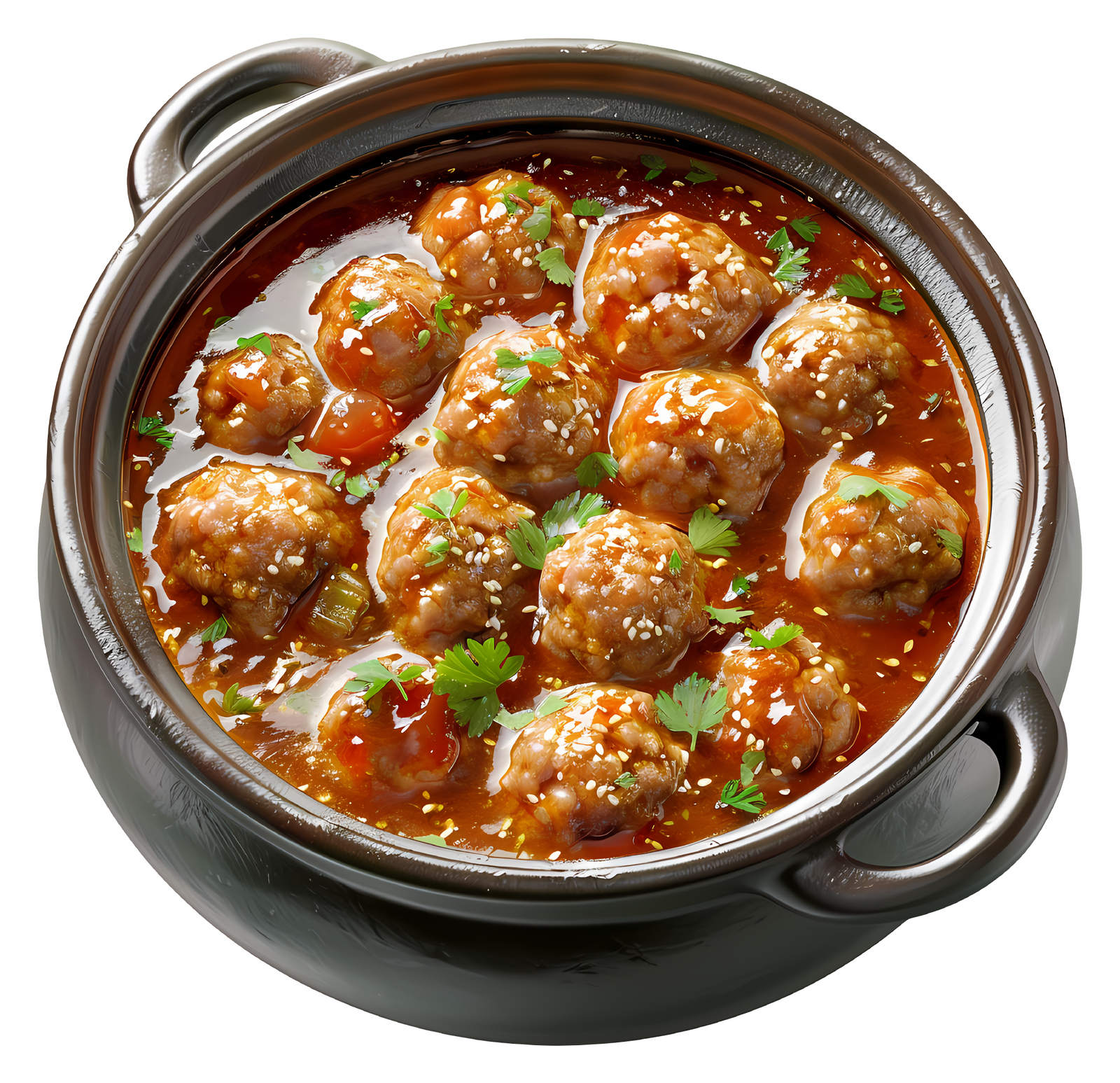 This vibrant sticker features a close-up image of a pot filled with delicious sweet and sour meatballs, sprinkled with sesame seeds and garnished with fresh parsley. Perfect for decorating your laptop, water bottle, or recipe book. Ideal for food lovers, cooks, and anyone who appreciates tasty and visually appealing designs. This high-quality vinyl sticker is durable and waterproof.