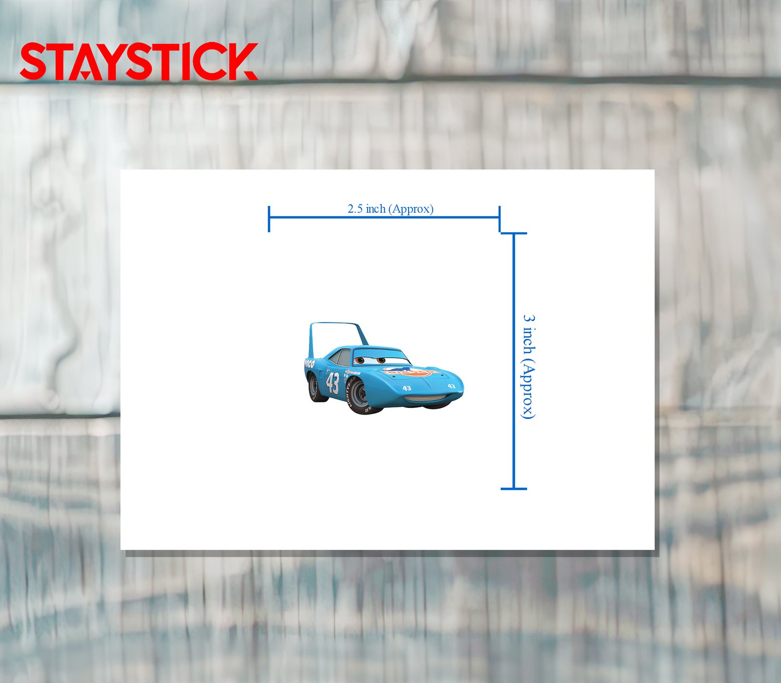 This vibrant sticker features ‘The King’ from the Disney Pixar movie Cars, adorned in his iconic Dinoco blue and number 43. Perfect for fans of the film, this sticker adds a touch of racing nostalgia to laptops, water bottles, notebooks, or any smooth surface. Made from durable, high-quality vinyl, it’s waterproof and fade-resistant, ensuring long-lasting enjoyment. A must-have collectible for Cars enthusiasts!