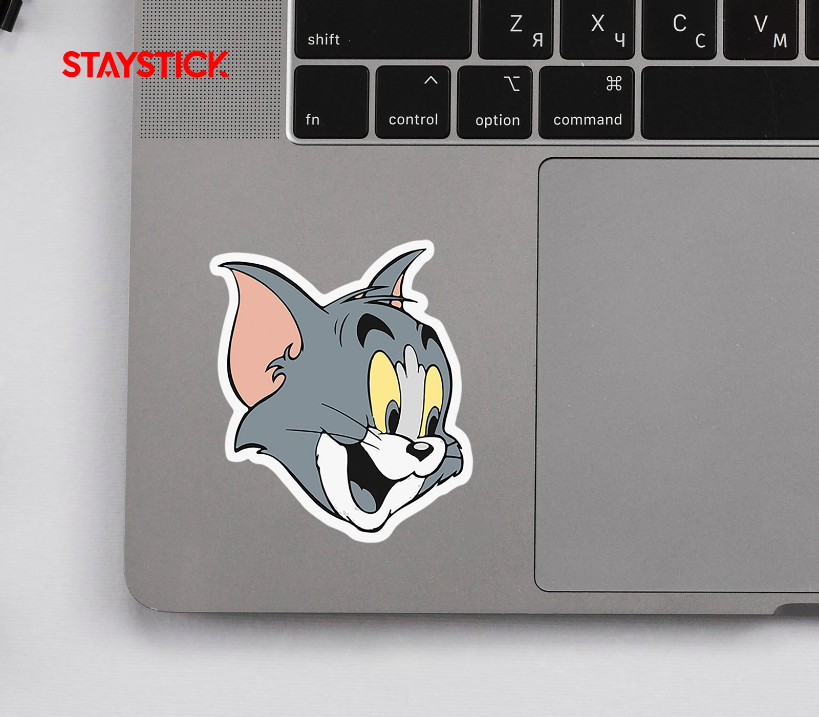 This sticker showcases the face of Tom, the iconic grey cat from the beloved cartoon series Tom and Jerry. The design captures Tom’s mischievous grin. Made with durable, high-quality vinyl, this sticker is perfect for decorating laptops, water bottles, notebooks, and more. A great gift for Tom and Jerry fans of all ages.