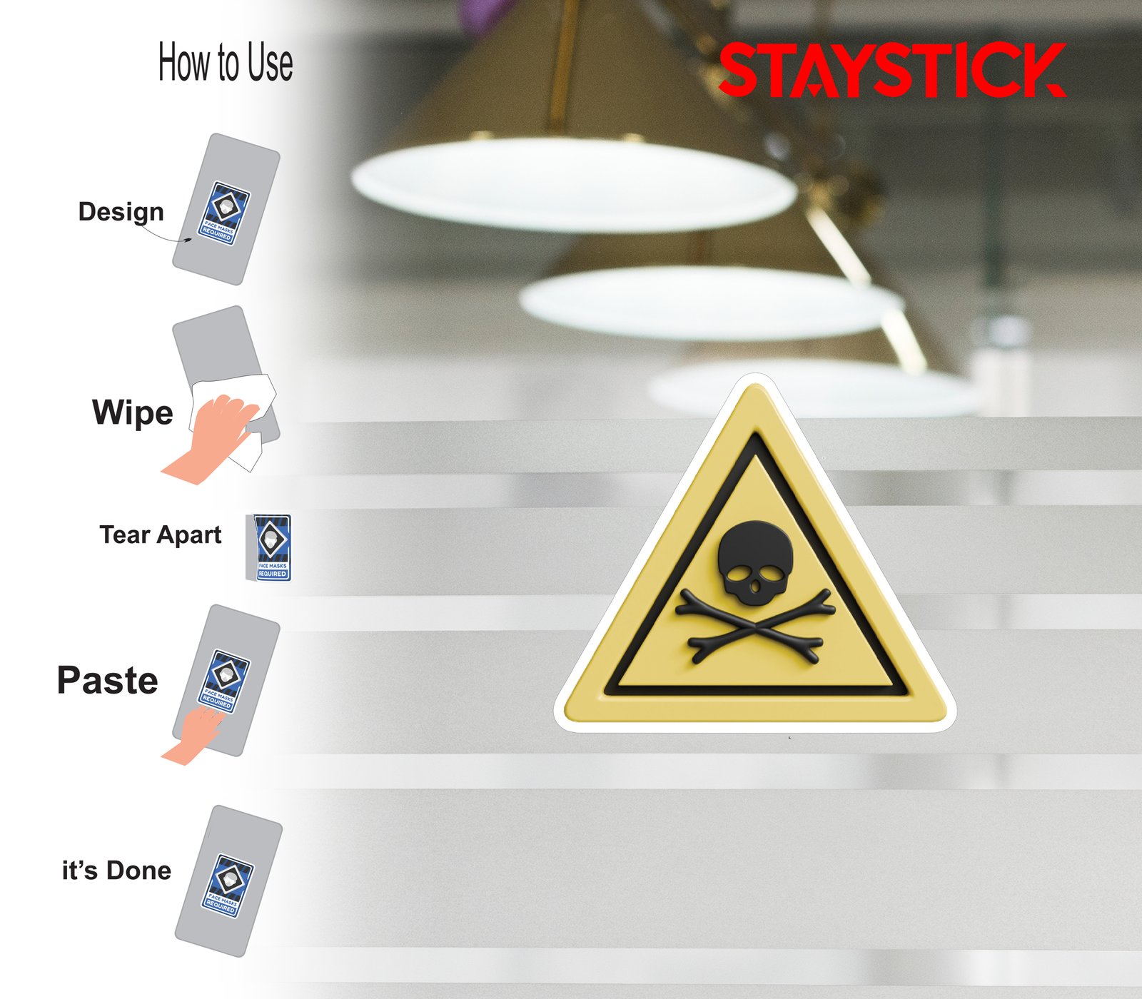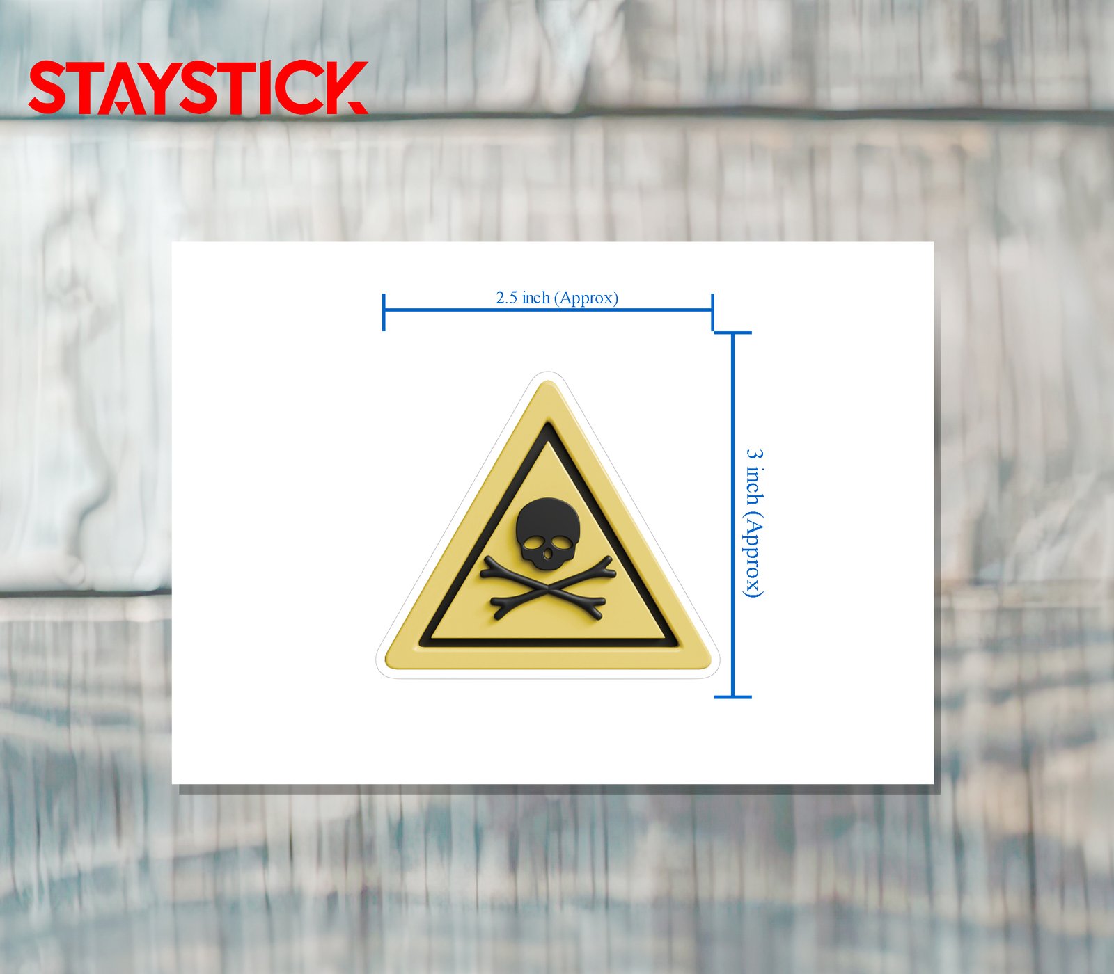 “This sticker features a yellow triangular warning design with a bold black skull and crossbones symbol, universally recognized as a sign of danger, poison, or toxic substances. The sharp triangular shape combined with the striking symbol delivers an immediate visual warning.Widely used in chemical plants, laboratories, warehouses, and industrial areas, this sticker alerts people to the presence of dangerous or life-threatening materials. Its bright yellow background ensures high visibility, while the skull and crossbones act as a direct cautionary signal to prevent accidental exposure or mishandling of hazardous items.”