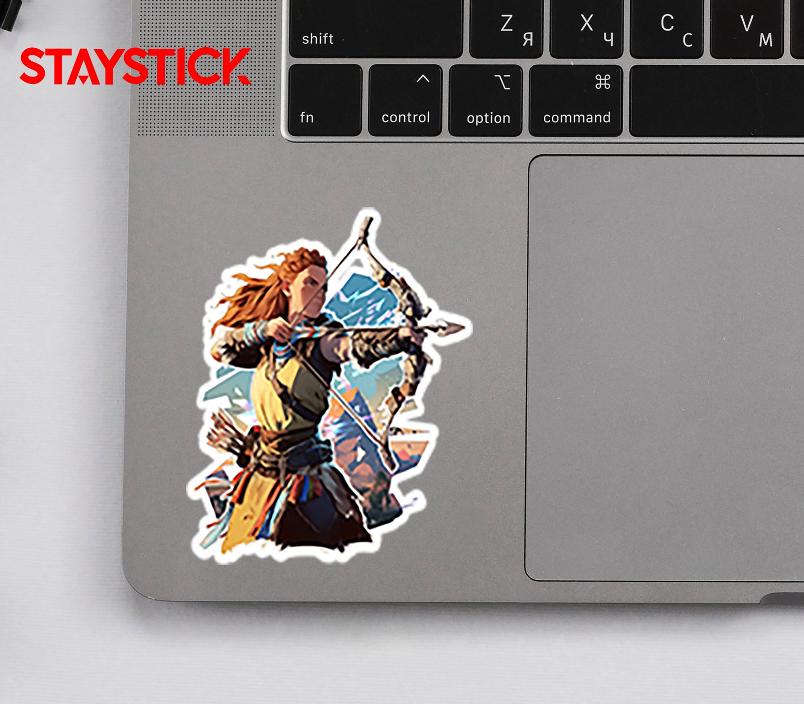 This powerful sticker showcases a determined warrior in mid-action, pulling back her bow with precision and confidence. Dressed in rugged, tribal-inspired attire with a quiver of arrows on her back, she embodies resilience, bravery, and survival spirit. The detailed artwork captures her fiery hair flowing in motion, her intense gaze locked on the target, and her bow intricately designed to reflect both tradition and strength. With a vibrant, colorful backdrop suggesting a battle or adventure scene, this sticker is perfect for fans of epic journeys, gaming heroes, or anyone inspired by fierce determination and skill. It makes an ideal addition to laptops, journals, gaming consoles, or gear, bringing a bold and adventurous vibe anywhere it’s placed.