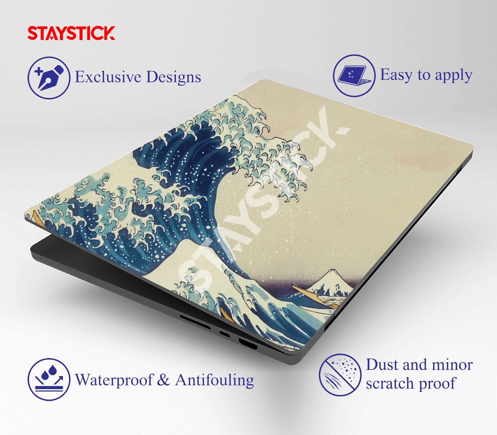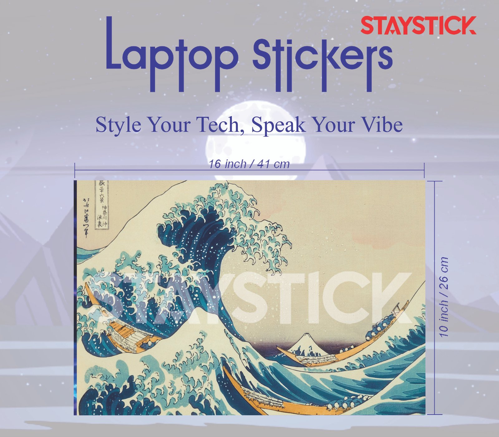 This laptop sticker showcases the legendary Japanese woodblock print The Great Wave off Kanagawa by artist Hokusai, renowned for its powerful depiction of nature. The vivid design captures towering blue waves crashing around boats, with Mount Fuji calmly rising in the distance—symbolizing strength, resilience, and balance. Printed on premium vinyl, this skin not only transforms your laptop into a piece of art but also provides scratch and dust protection. With easy, bubble-free application and residue-free removal, it combines traditional art with modern practicality. A perfect choice for art lovers, students, and professionals who want their device to reflect culture, beauty, and timeless style.