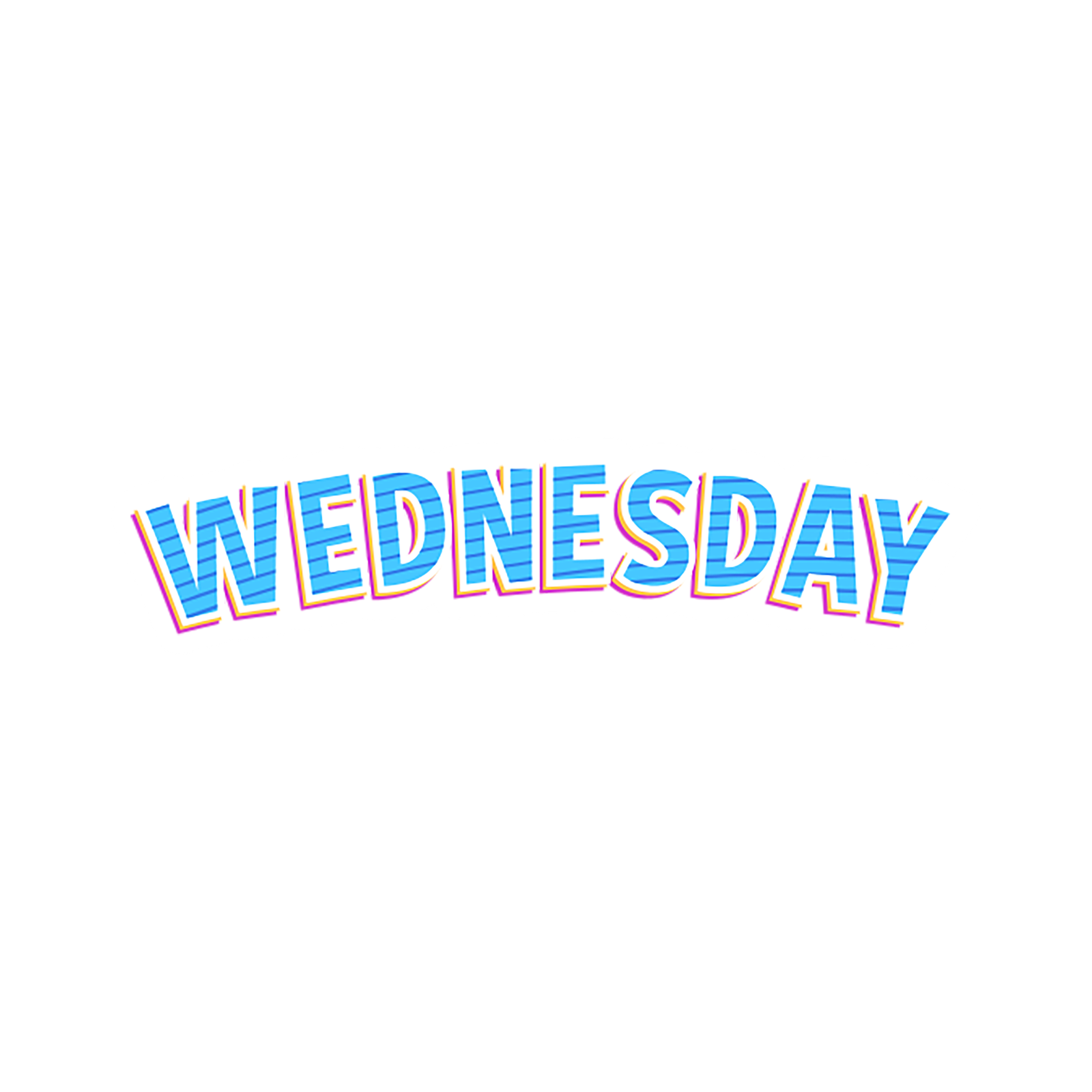 A bold, icy-themed sticker of the word “WEDNESDAY” in blue patterned letters with a frosty vibe.