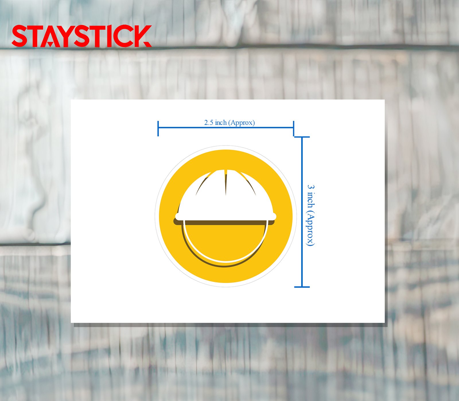 “This sticker features a white hard hat icon centered on a yellow circular background, symbolizing safety, protection, and precaution. The design highlights the importance of wearing helmets in construction zones, factories, and industrial workplaces to prevent head injuries and ensure worker well-being.The hard hat is a universal sign of safety compliance and workplace responsibility. This sticker serves as a visual reminder for employees and visitors to follow safety protocols by wearing protective gear. It’s suitable for safety awareness campaigns, workplace posters, and industrial safety signage.”