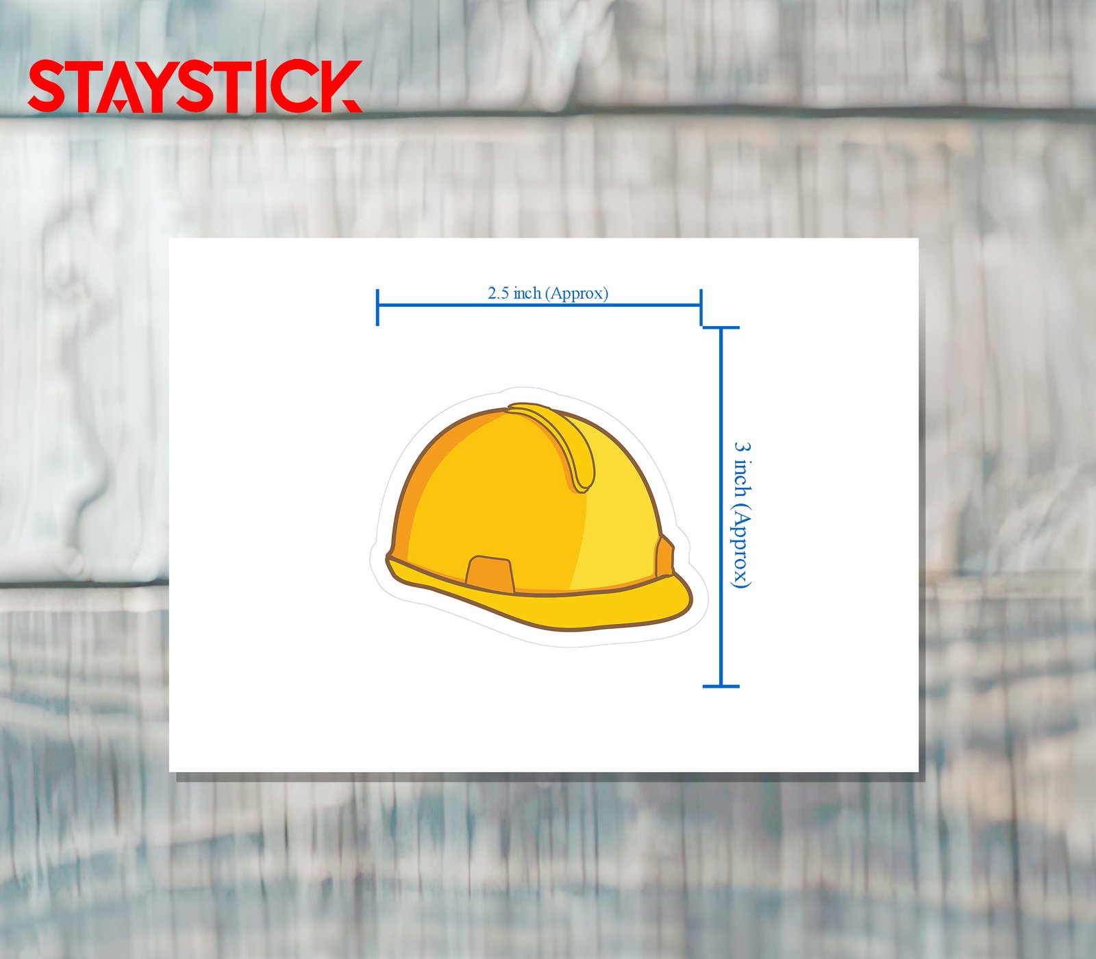 “This sticker shows a bright yellow safety helmet, commonly known as a hard hat, designed to protect workers from head injuries caused by falling objects, impacts, or electrical hazards. It represents one of the most essential pieces of personal protective equipment (PPE) in construction and industrial environments.The yellow helmet sticker symbolizes workplace safety and awareness. Hard hats are mandatory gear on construction sites, ensuring that workers remain protected while carrying out heavy-duty or high-risk tasks. It stands as a reminder of the importance of prioritizing safety in hazardous work conditions.”