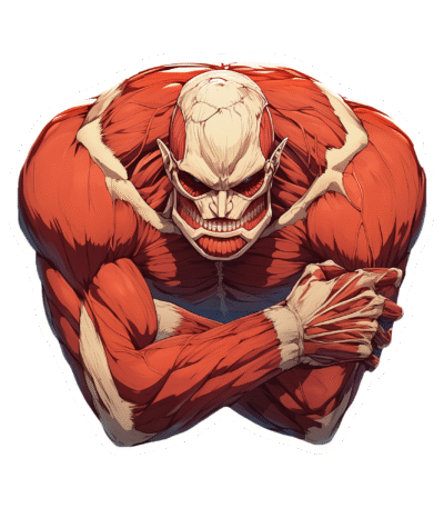 Bold anime-style colossus sticker, high-contrast and intense.