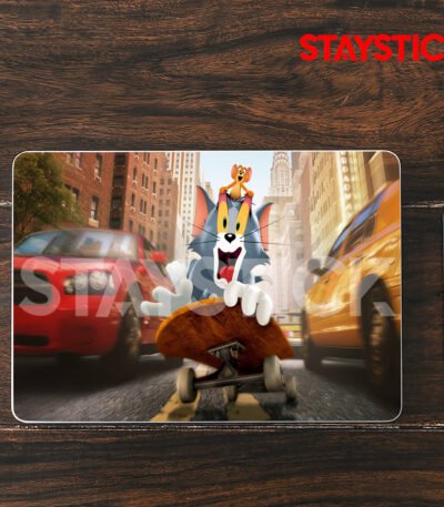 A vibrant Tom and Jerry sticker featuring the classic cartoon logo and characters.
