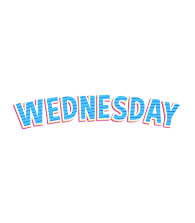 A bold, icy-themed sticker of the word “WEDNESDAY” in blue patterned letters with a frosty vibe.